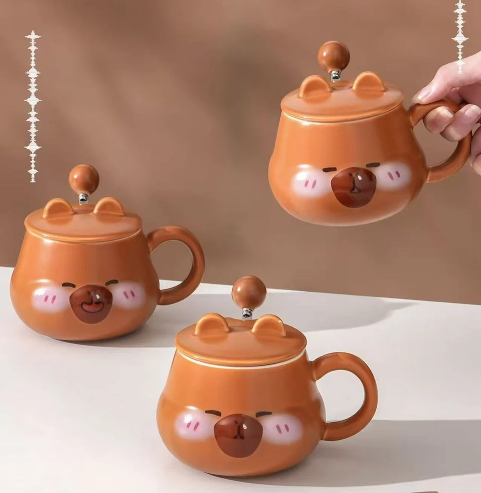 TAZA CON TAPA CAPYBARA CUTE + CUCHARA