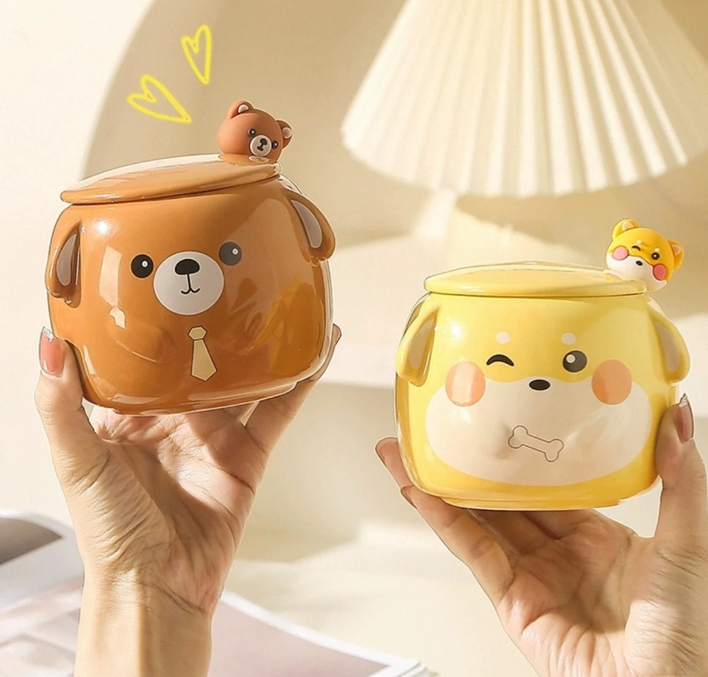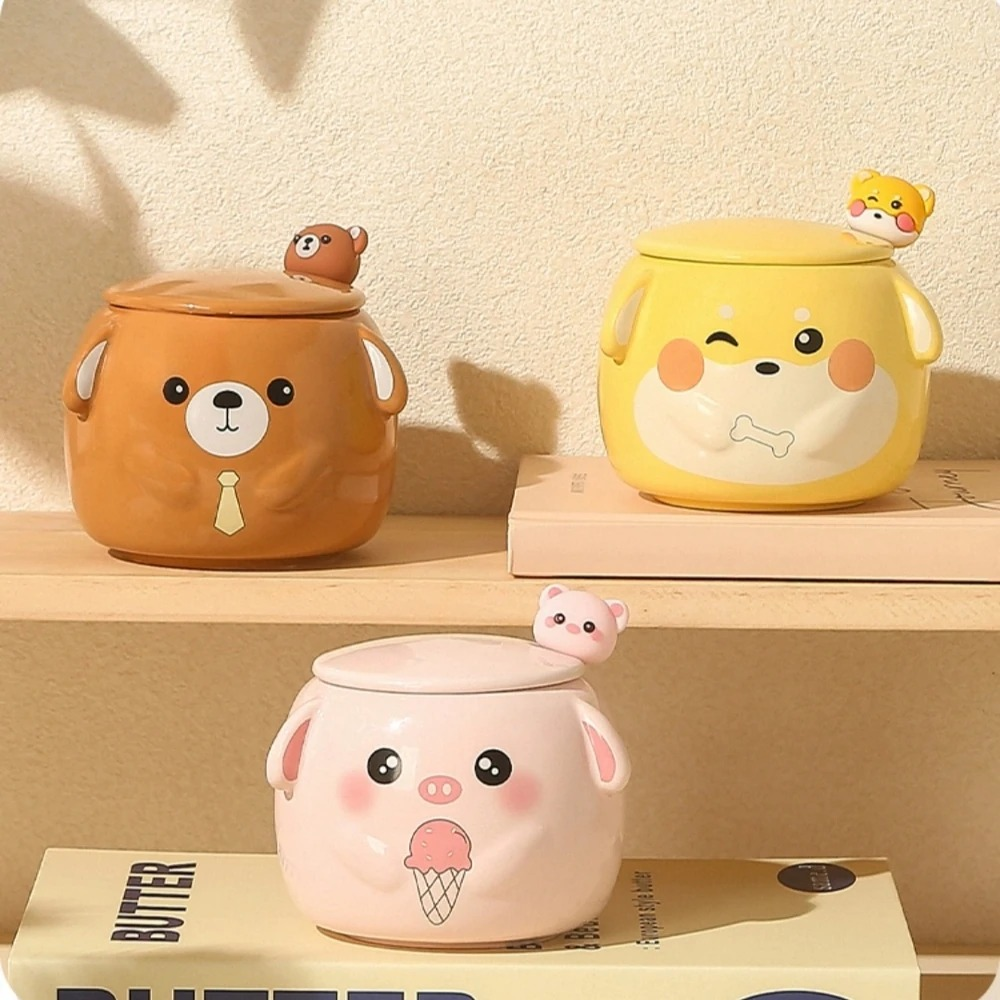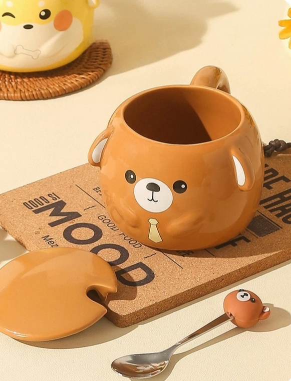 TAZA ANIMALES CON OREJAS + TAPA+ CUCHARA