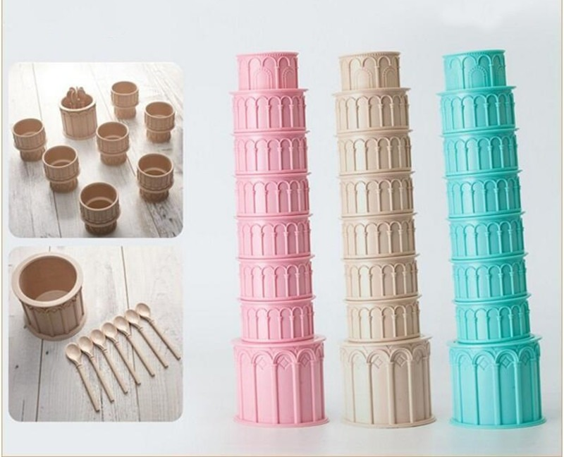 JUEGO DE TAZAS PISA Original Set de 6 Tazas con Azucarera y 6 cucharitas, Formando la famosa Torre de Pisa