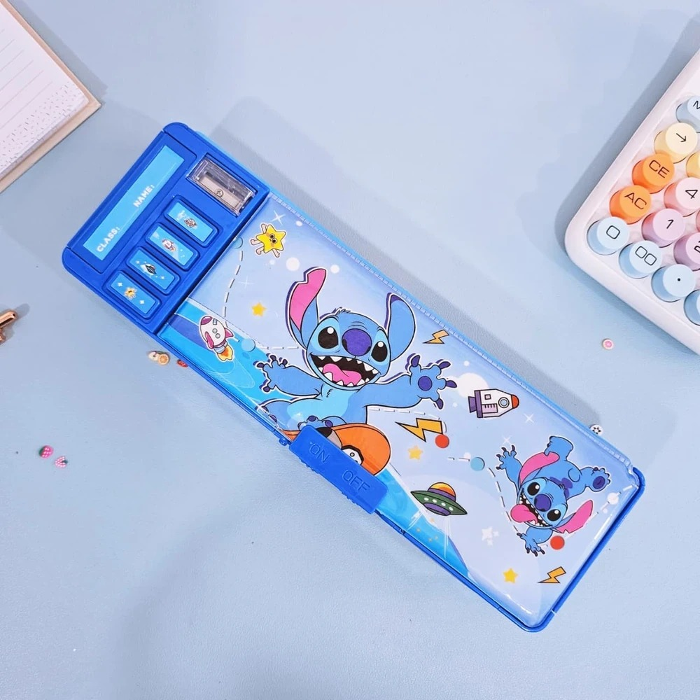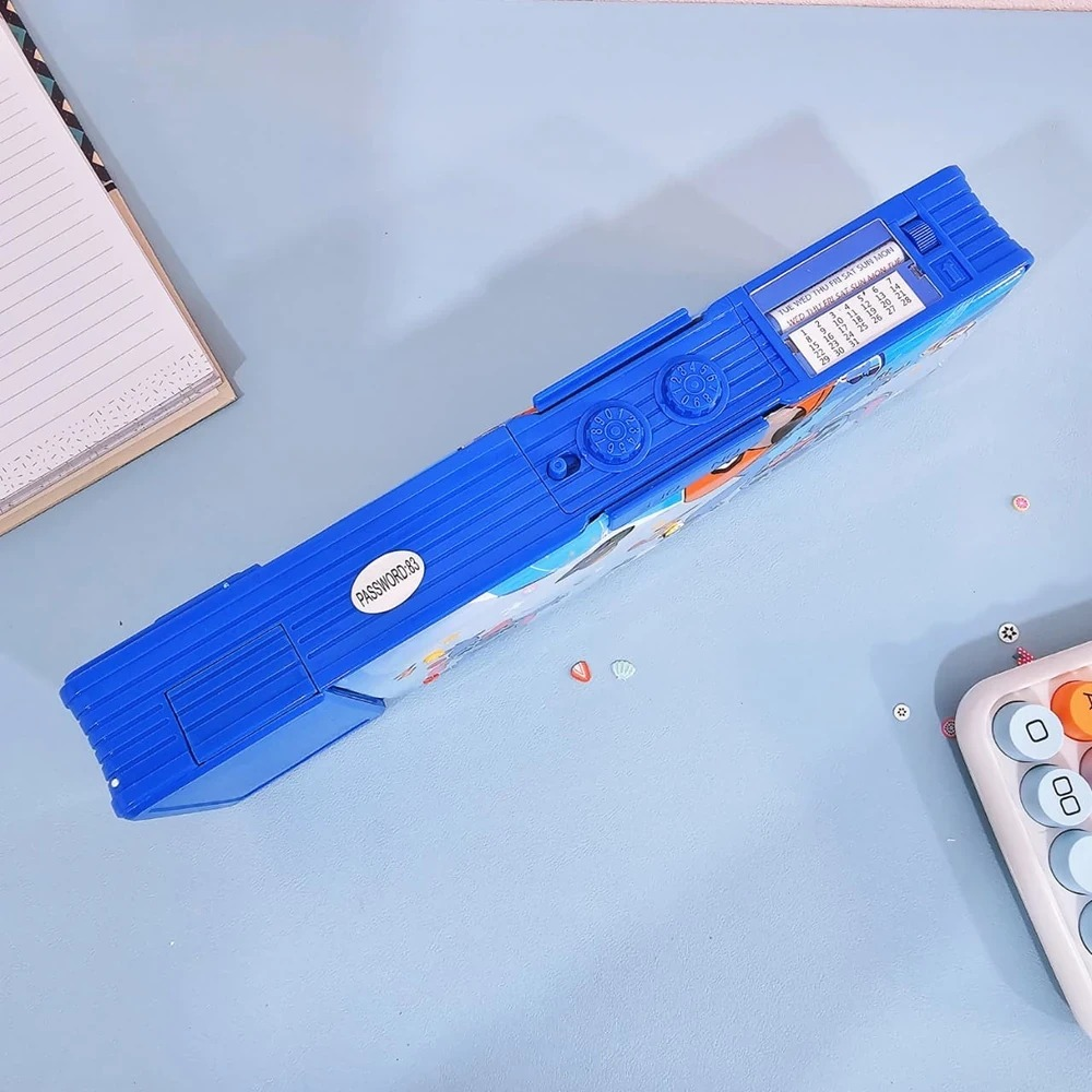 (Cartuchera ideal para guardar y organizar lapiceras, lápices, gomas de borrar, sacapuntas, tijeras, pegamento y otros pequeños accesorios. Tiene contraseña para poder abrirla, incluye sacapuntas y cuenta con compartimientos varios que pueden abrirse con presionar un botón. Tiene 2 sectores para colocar lápices, regla y objetos mas grandes y 3 mas chicos).