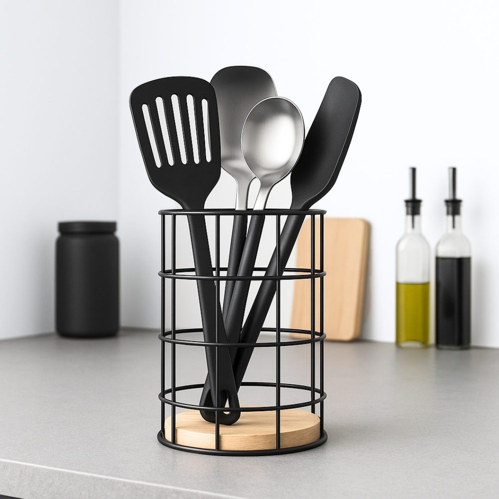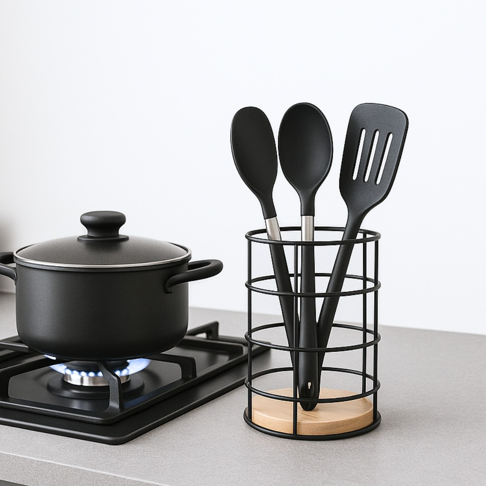 PORTA CUBIERTO-UTENSILIOS CON BASE BAMBU