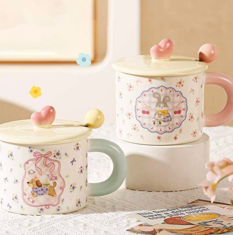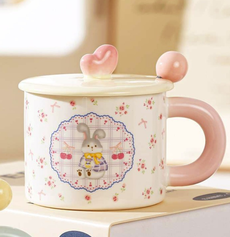 TAZA CERAMICA CON TAPA Y CUCHARA PUPPY RABBIT 420ML