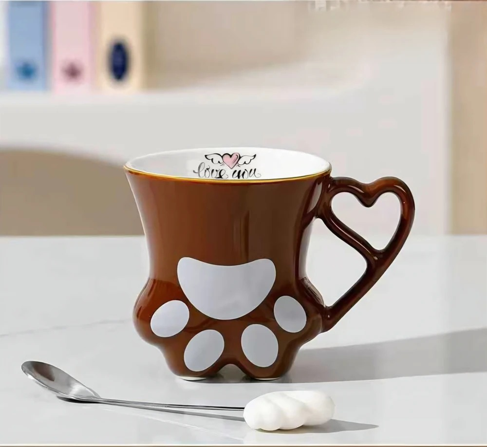 TAZA CERAMICA GARRA DE GATO + CUCHARITA