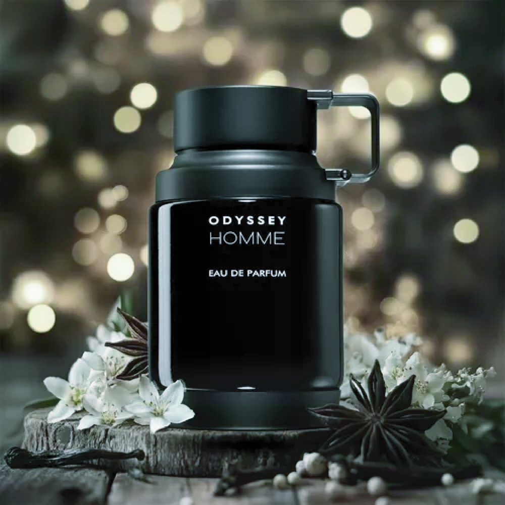 dyssey Homme de Armaf es una fragancia de la familia olfativa Oriental para Hombres. Las Notas de Salida son vainilla y ámbar; las Notas de Corazón son notas orientales, especias y iris; las Notas de Fondo son vainilla, cuero y jazmín.