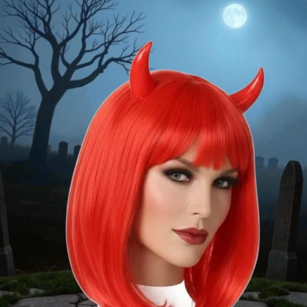 PELUCA ROJA DIABLITA CON CUERNOS HALLOWEEN