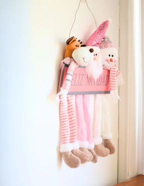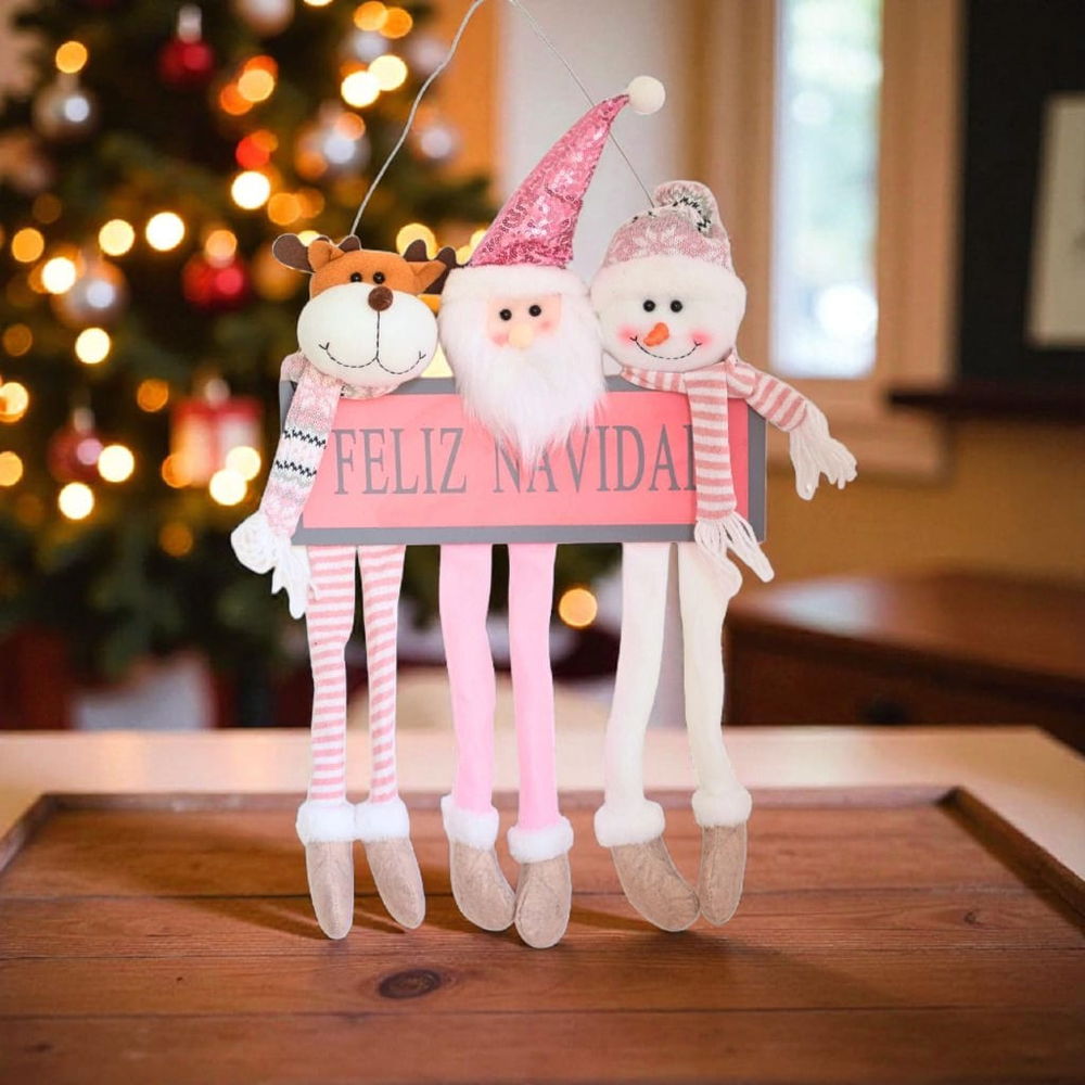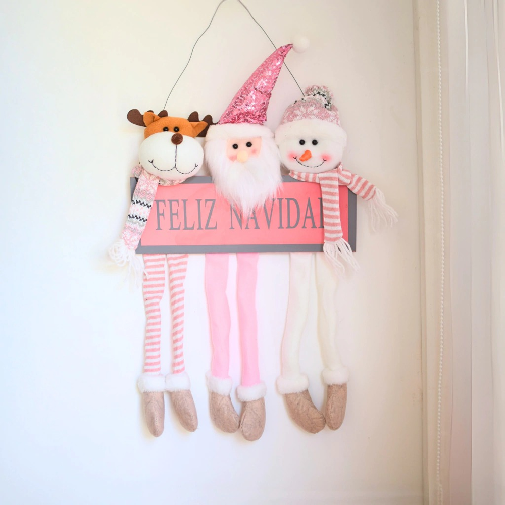 ADORNO COLGANTE DE NAVIDAD - SANTA, RENO Y NIEVE "PINK" - 58CM.