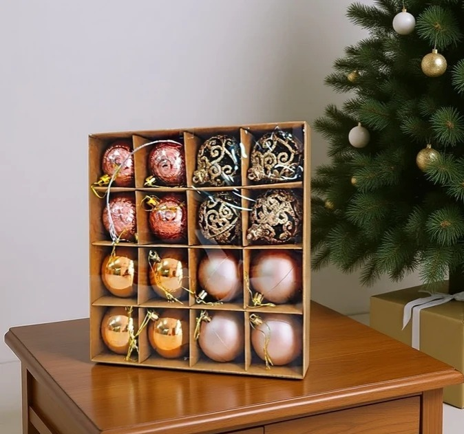 (Cada caja cuenta con 16 esferas navideñas de color matte y brilloso. Ideal para decorar el árbol de navidad, el diámetro de cada esfera es de 6cm).