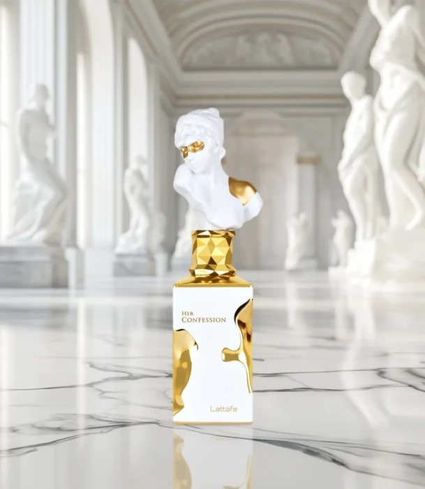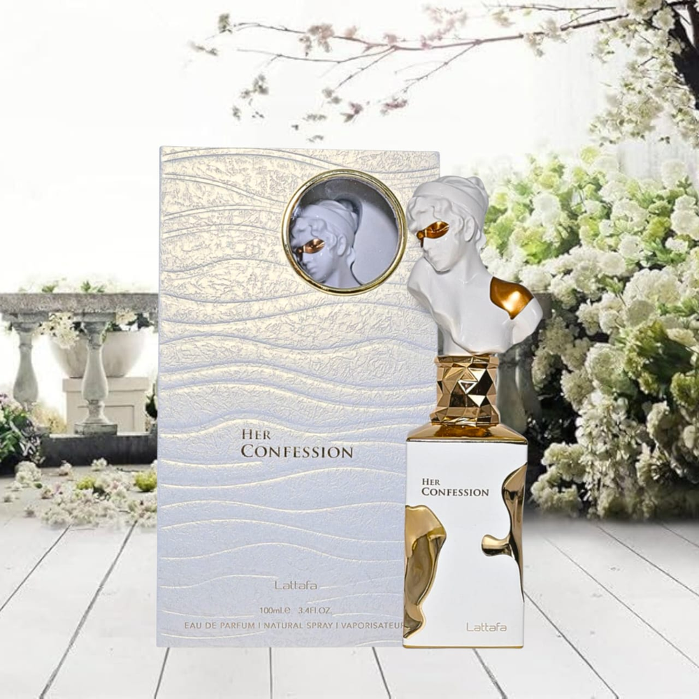 Her Confession de Lattafa es una fragancia de la familia olfativa Almizcle Floral para Mujeres. Esta fragancia es nueva, se lanzó en 2024. Las Notas de Salida son Místico y canela; las Notas de Corazón son nardos, Mahonial, jazmín, incienso; las Notas de Fondo son vainilla, haba tonka y almizcle.
