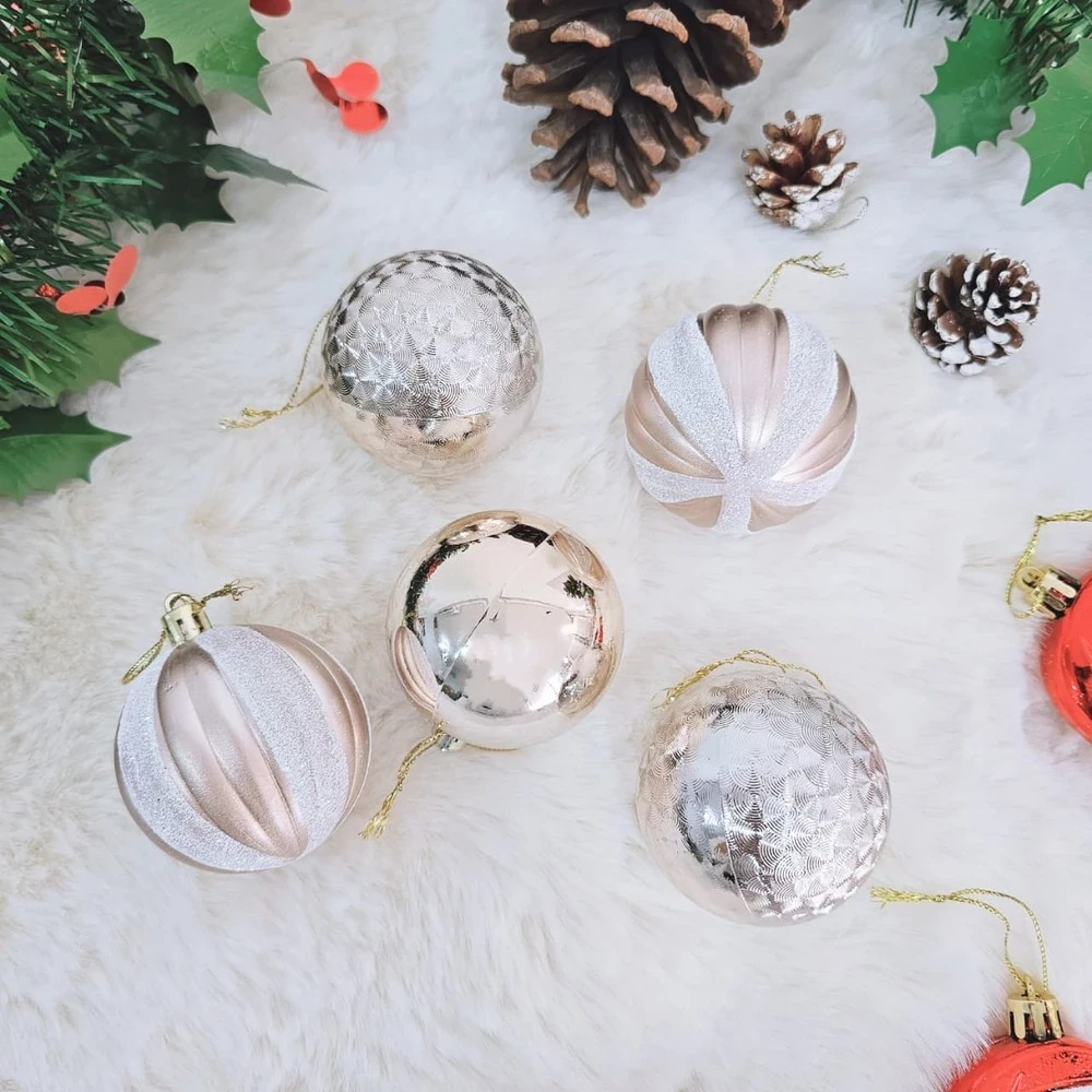 (Cada set cuenta con 12 esferas navideñas de color matte y brilloso. Ideal para decorar el árbol de navidad, el diámetro de cada esfera es de 6cm).