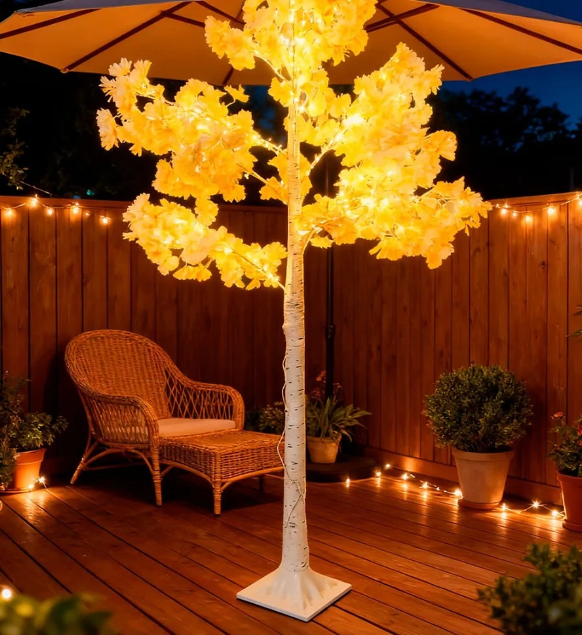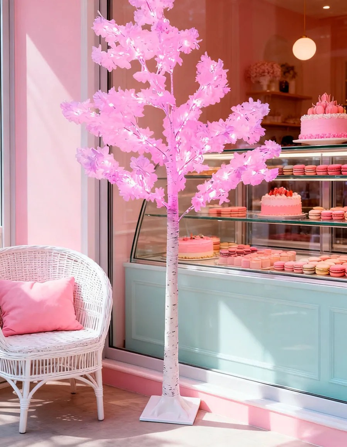 Árbol de Navidad con rama florales, de 1.8 metros con 240 luces. Ideal para crear un ambiente acogedor en salas o comercios. Funciona con conexión USB.