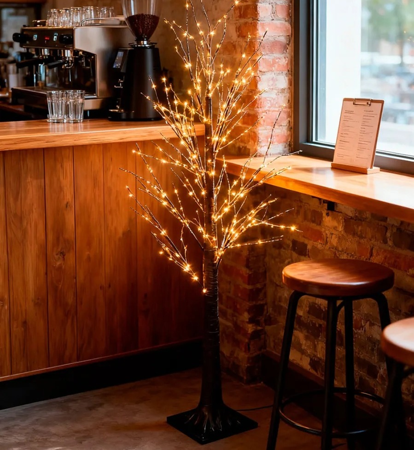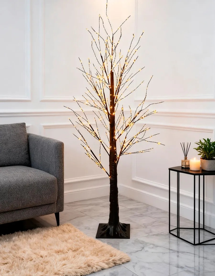 Árbol decorativo de 1.5 metros con 480 luces LED cálidas, ideal para ambientar espacios con un estilo moderno. Sus ramas estilizadas crean un efecto visual elegante, perfecto para decoración navideña. Cuenta con enchufe plano tipo 8, fácil de instalar y usar.