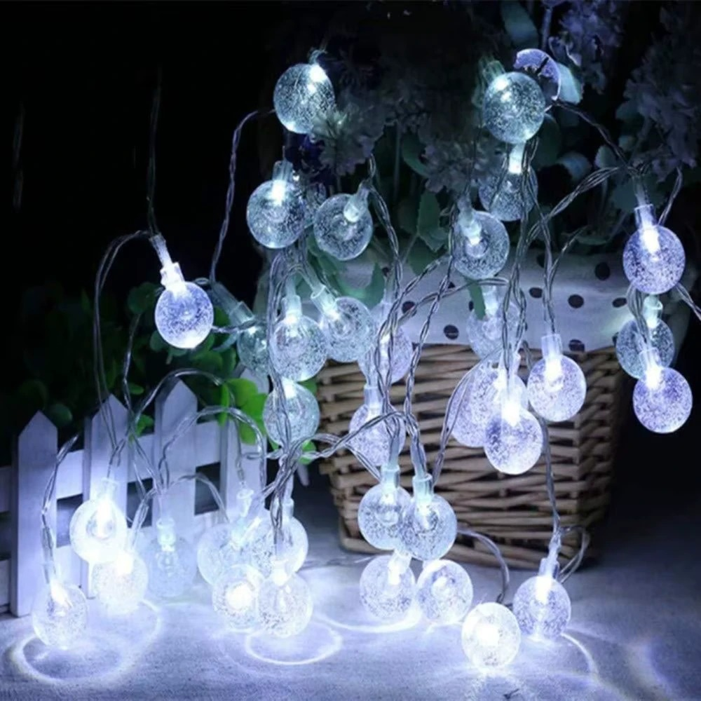 Luces leds. Esferas brillosas. Hermosa Guirnalda Decorativa led conformada por 28 Mini Bolitas led Cristal transparentes color Blanco FRIO en una tira de 3 metros de Longitud. Con Cable Transparente. Se conectan directo a 220v. Ideal para decorar Ambientes interiores, para fiestas, Eventos varios, Cumpleaños, o simplemente para darle un toque decorativo y calido a cualquier rincon de tu Hogar.