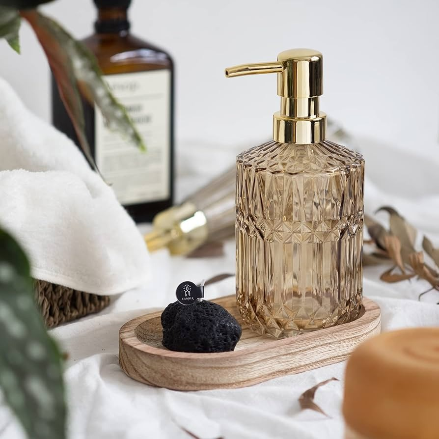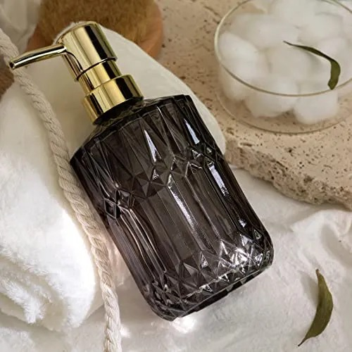 Dale estilo a tu baño o tu cocina con este dispenser de jabón facetado, se presenta en color gris o caramelo.