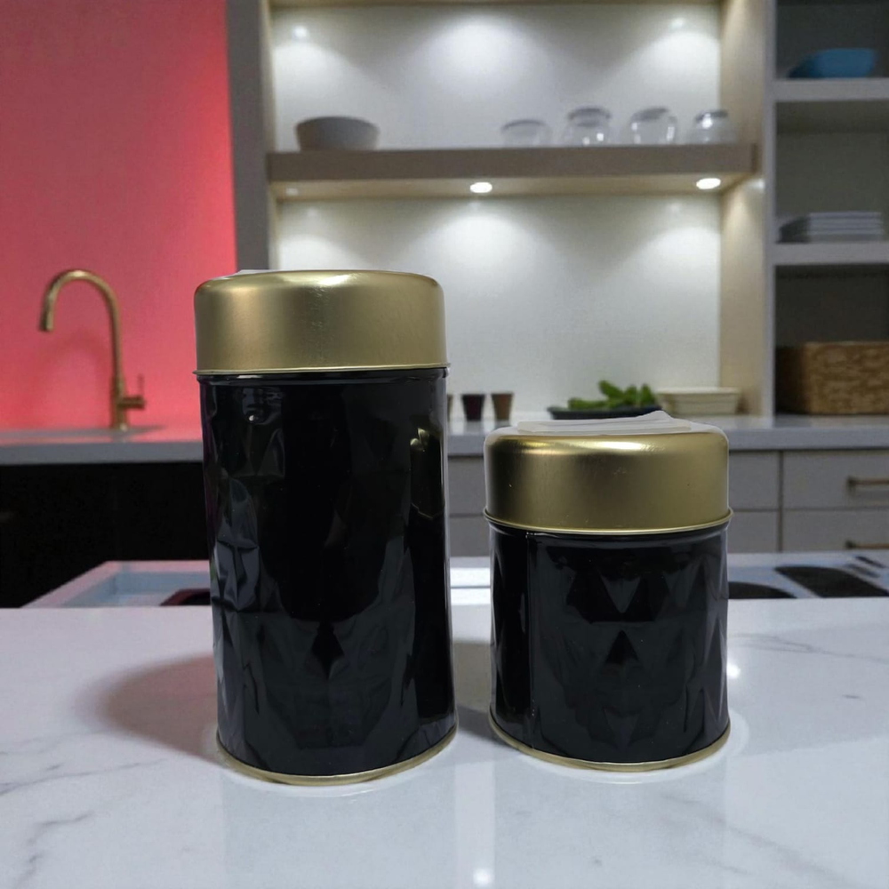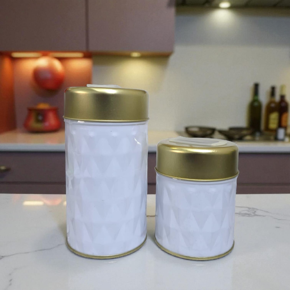 Set de yerbero y azucarero metalico con diseño de relieve. Medidas: Azucarero: 10 x 8.5 - yerbero: 15.5 x 10 cm