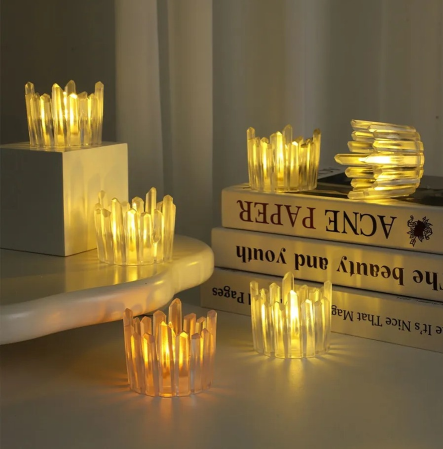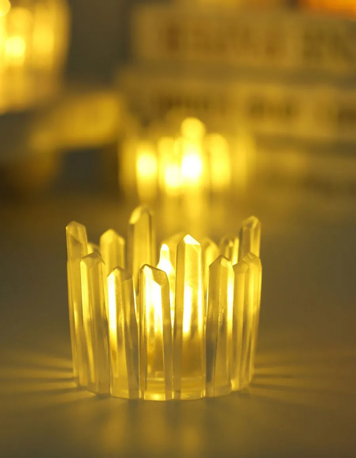 Vela LED diseño montaña de hielo Iluminá tus espacios con estilo gracias a esta vela LED con forma de cristales de hielo. Fabricada en plástico translúcido, emite una luz cálida que crea un ambiente acogedor y elegante. Ideal para decorar mesas, estanterías o eventos especiales sin preocuparte por el fuego ni el humo.