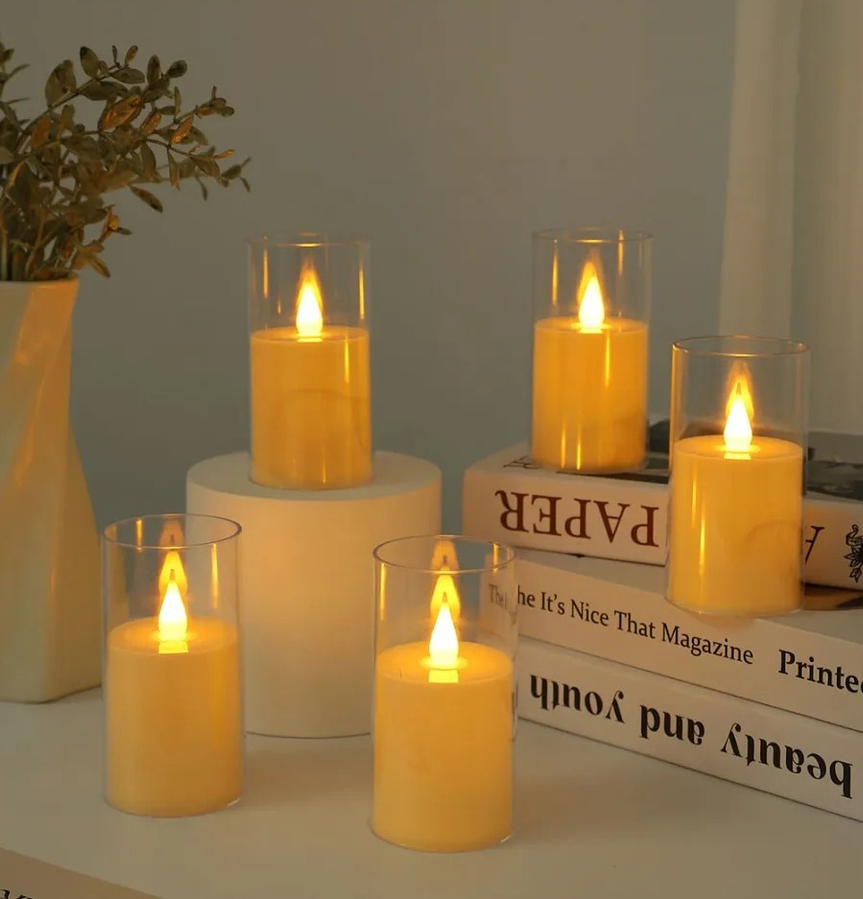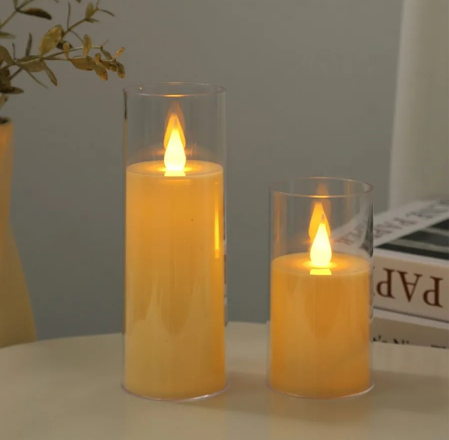 Vela LED con Cubierta Transparente Elegante y moderna, esta vela LED está protegida por una cubierta plástica tipo vaso que realza su efecto de luz cálida y realista.