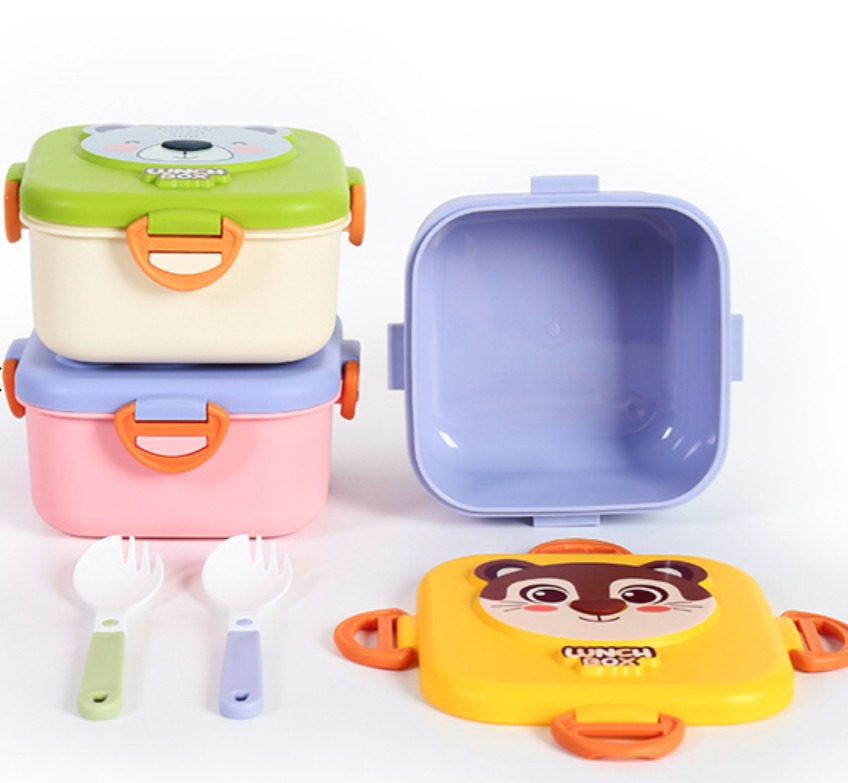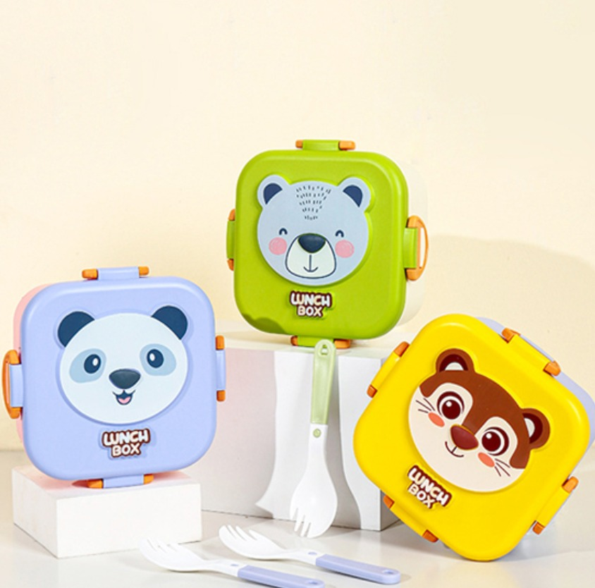 LUNCHERA CUADRADA CON CUBIERTOS ANIMAL FARM 600ML