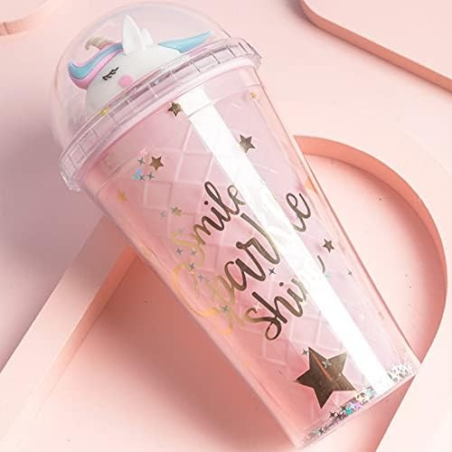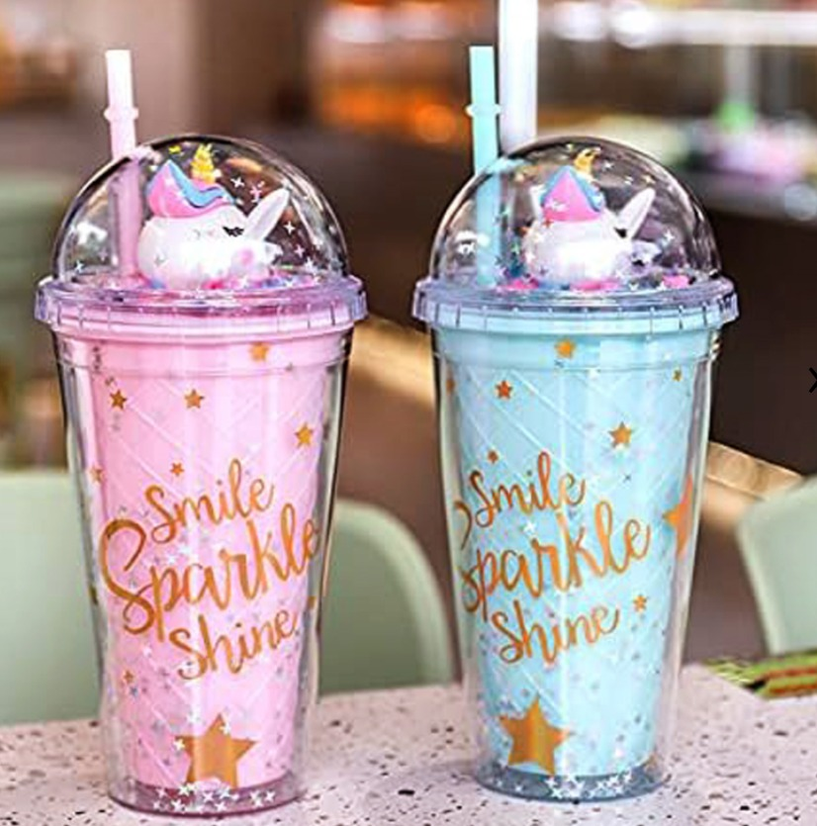 VASO ACRILICO UNICORNIO CON ESTRELLAS GLITTER 450ML