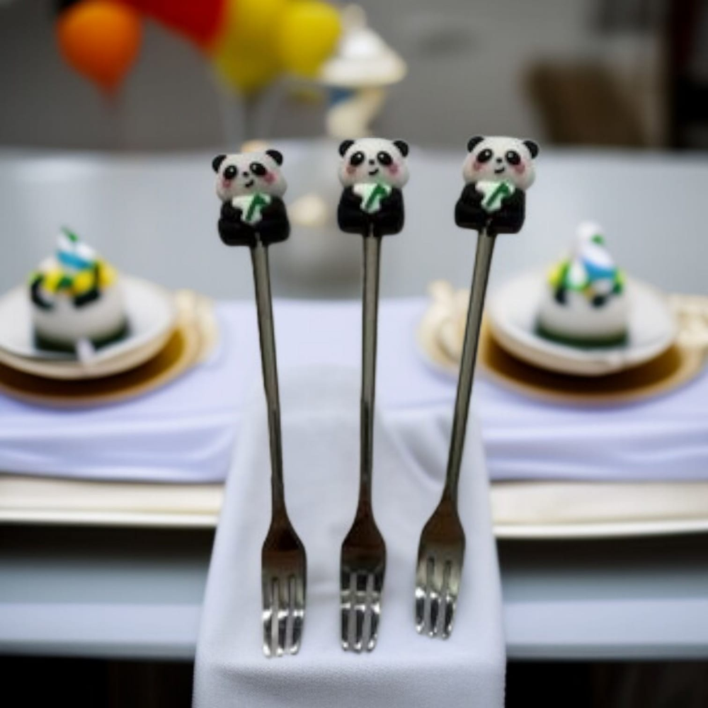 SET X 3 TENEDOR PLATEADO OSO PANDA BAMBOO