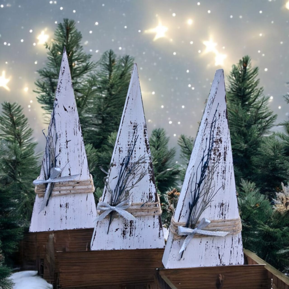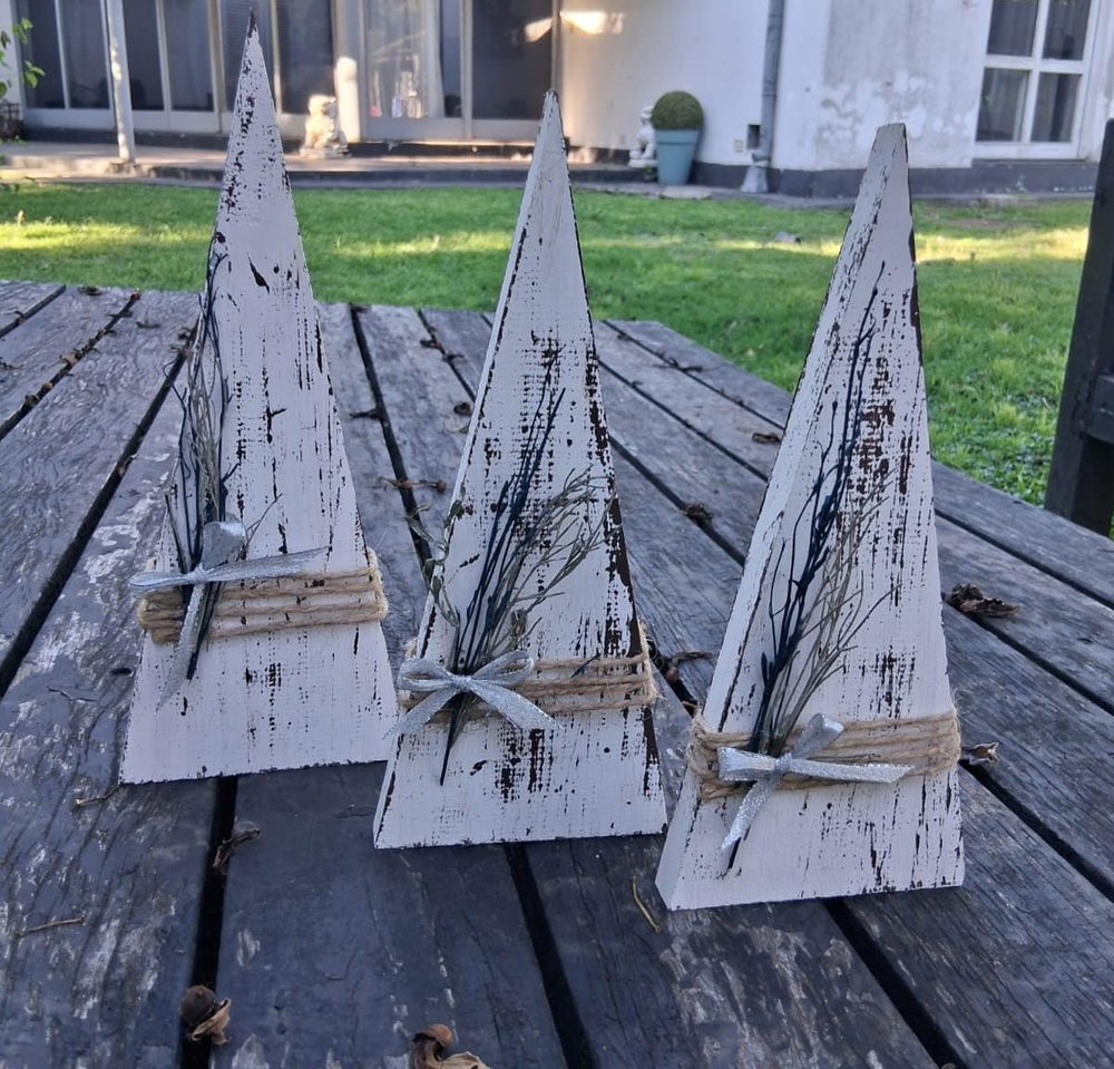 SET X 3 ARBOLITOS VINTAGE FLORES PLATEADO