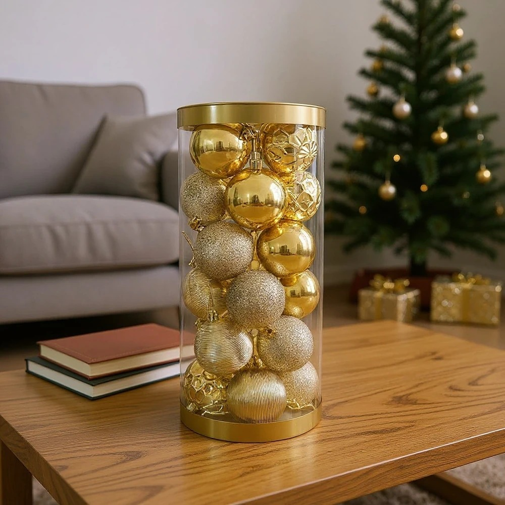 (Set x 24U. Bolas navideñas en color plateado con diferentes diseños en glitter, matte y brillantes. Ideal para decorar tu arbolito)