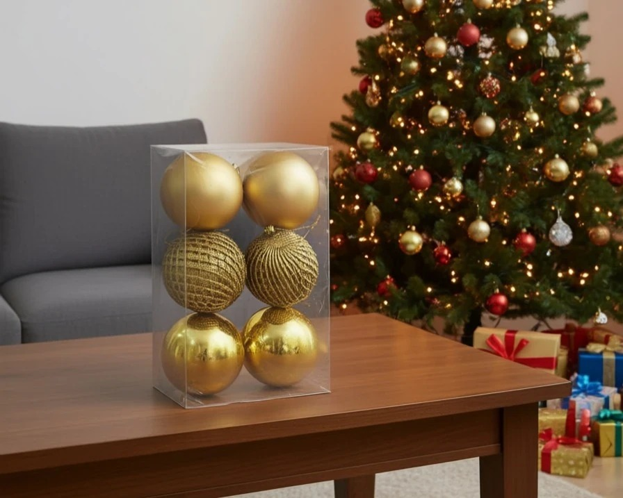 (Cada set cuenta con 6 esferas navideñas de color matte y brilloso. Ideal para decorar el árbol de navidad, el diámetro de cada esfera es de 10cm).