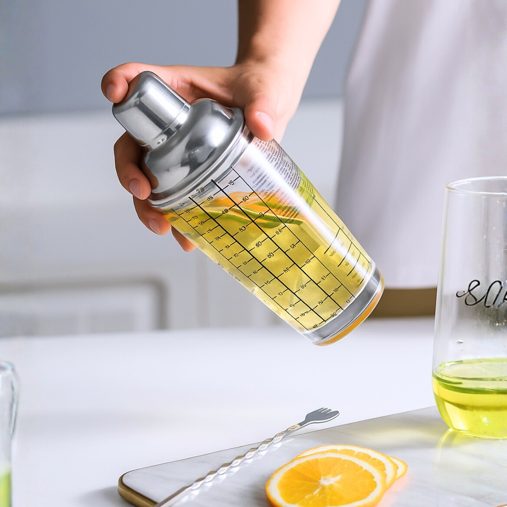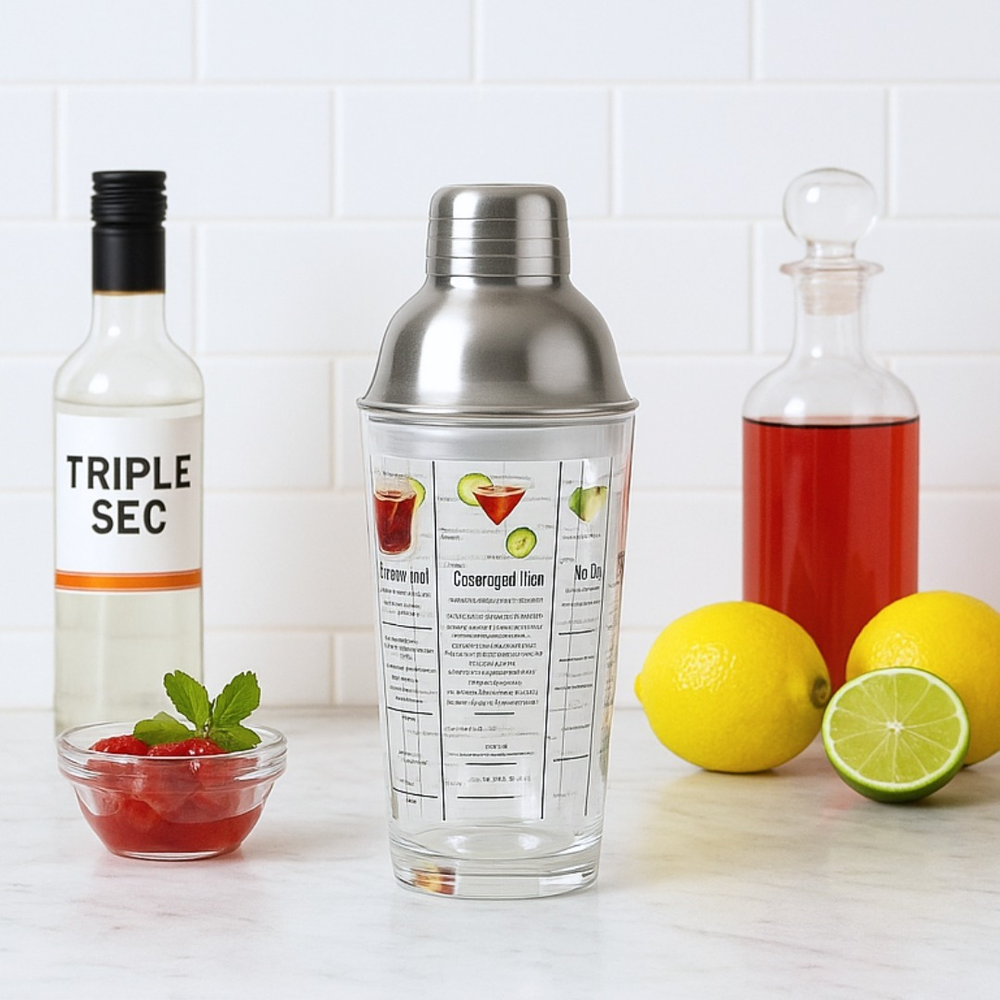 COCTELERA DE VIDRIO ESTAMPADA EN CAJA