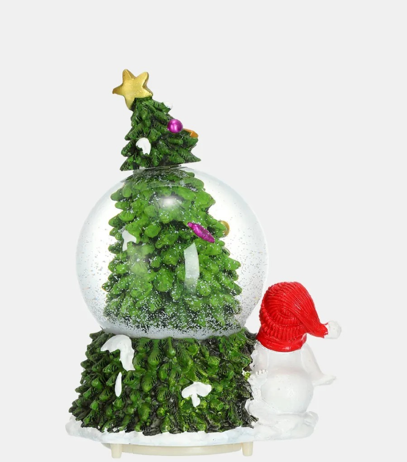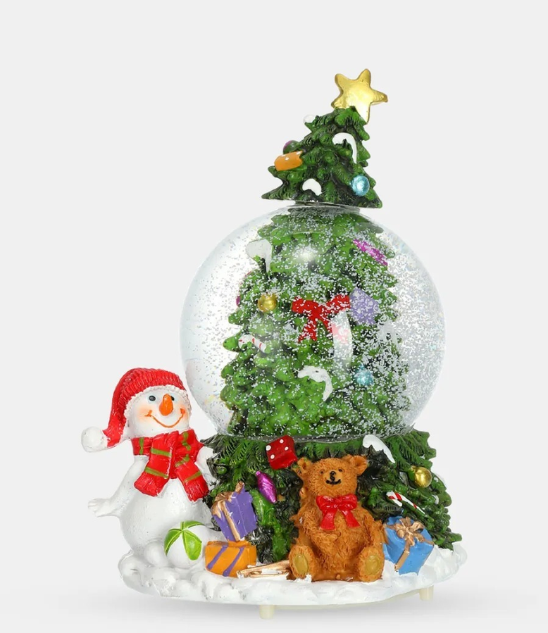 Bola de cristal con nieve, luces y música. Funciona con 3 pilas AA, no vienen incluídas.