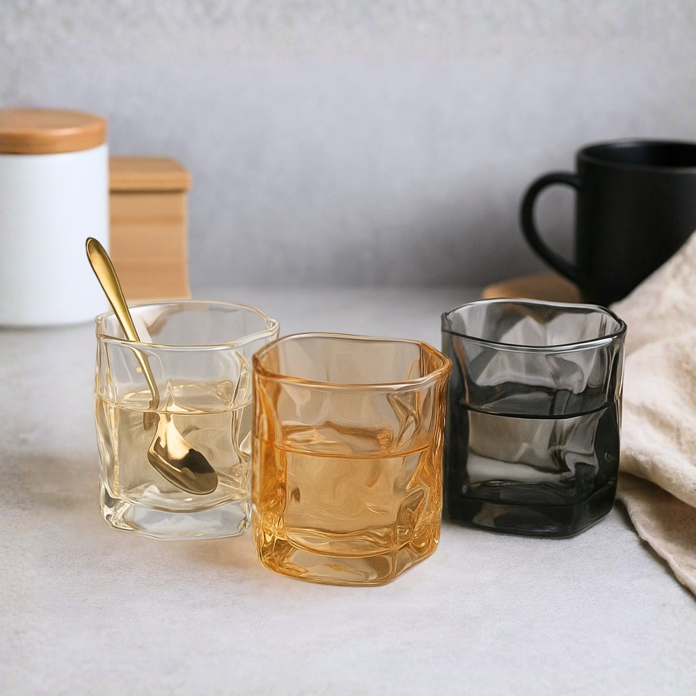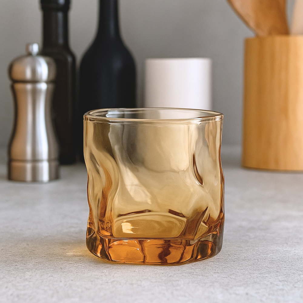 VASO DE VIDRIO FORMAS DORADO EN CAJA