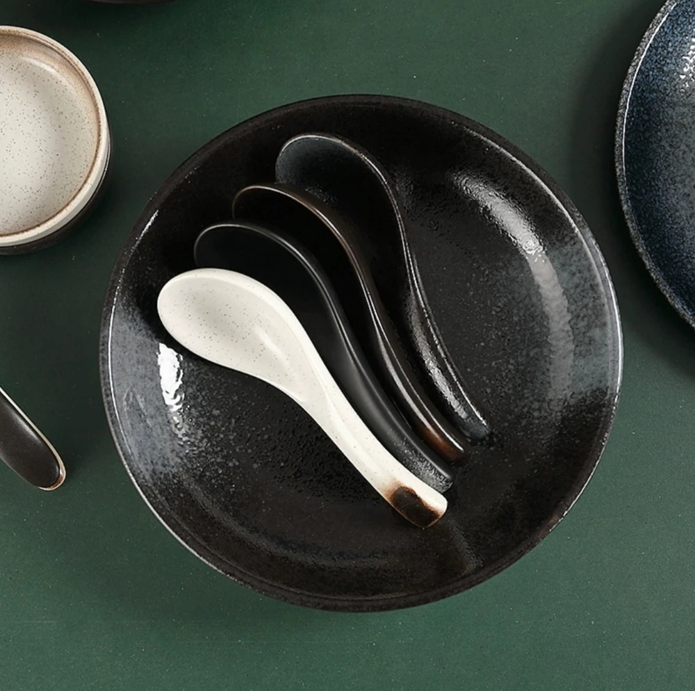 PLATO HONDO CERAMICA 20CM ESTILO ORIENTAL GRANITO NEGRO X U