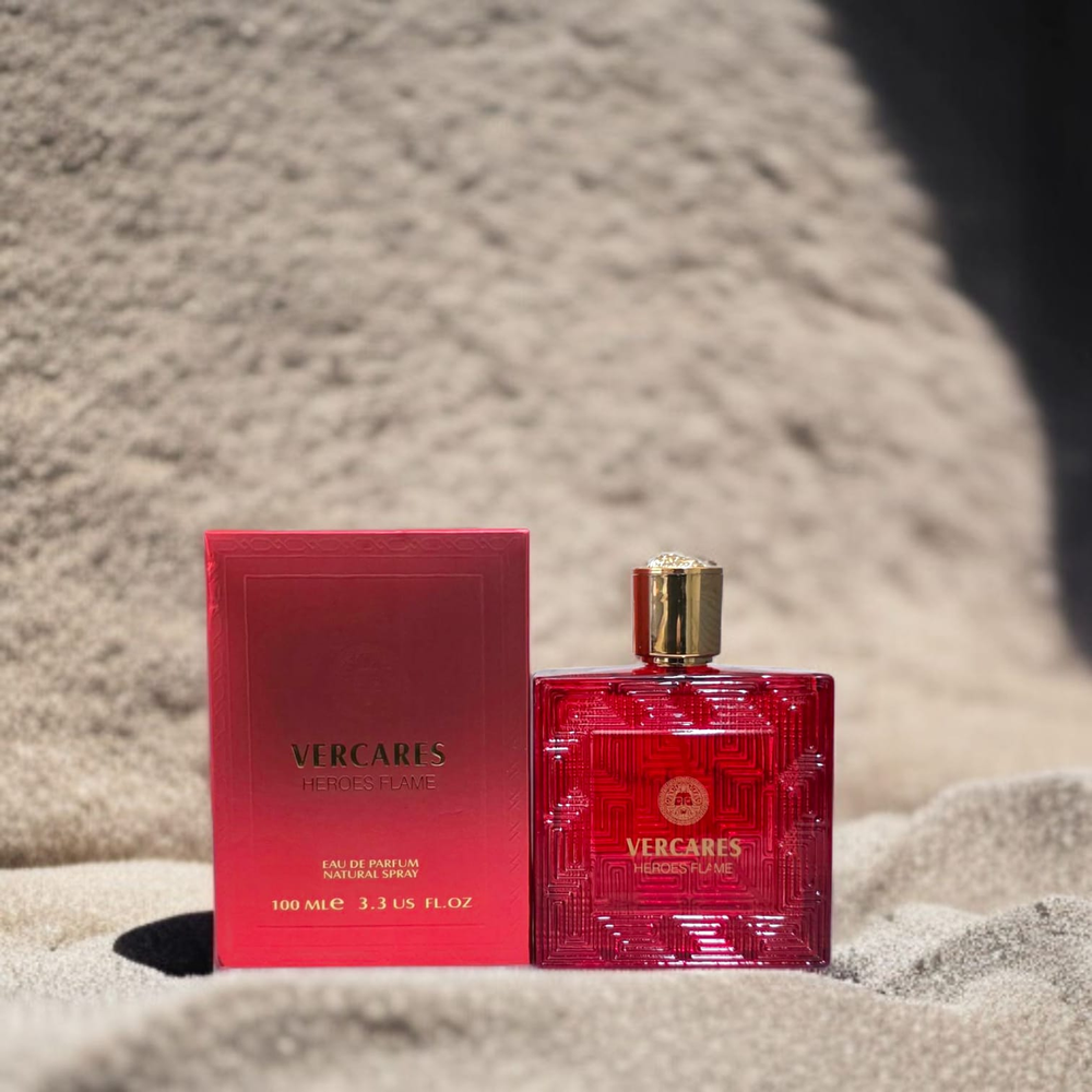 Eros Flame una fragancia apasionada e intensamente masculina inspirada en la ardiente esencia del amor. La fragancia se presenta en un llamativo frasco rojo Para aumentar la duración de la fragancia, aplícala en los puntos clave del pulso (cuello, interior de las muñecas, detrás de las orejas o en el pecho). Evita rociar la fragancia directamente sobre materiales delicados y joyas, ya que podría dañarlos.