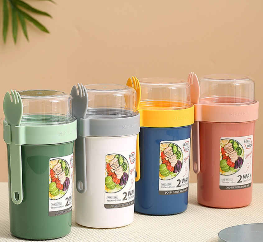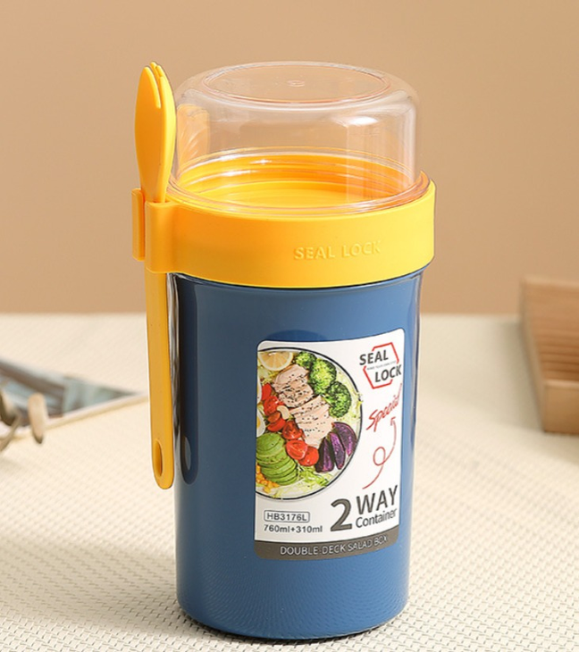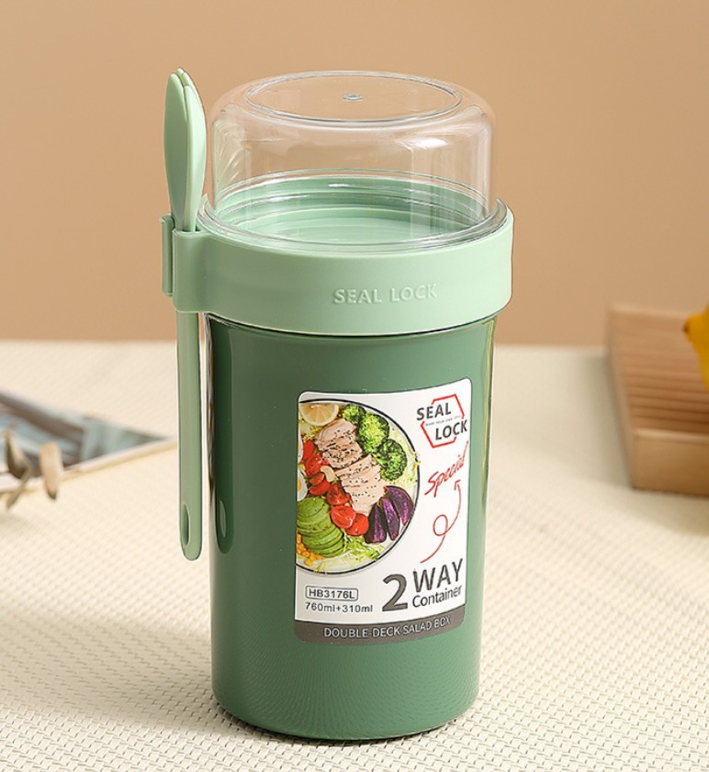 POTE PARA YOGURT -FRUTAS 2 EN 1 SALSERO TAMAÑO M CON CUCHARA 760+230ML