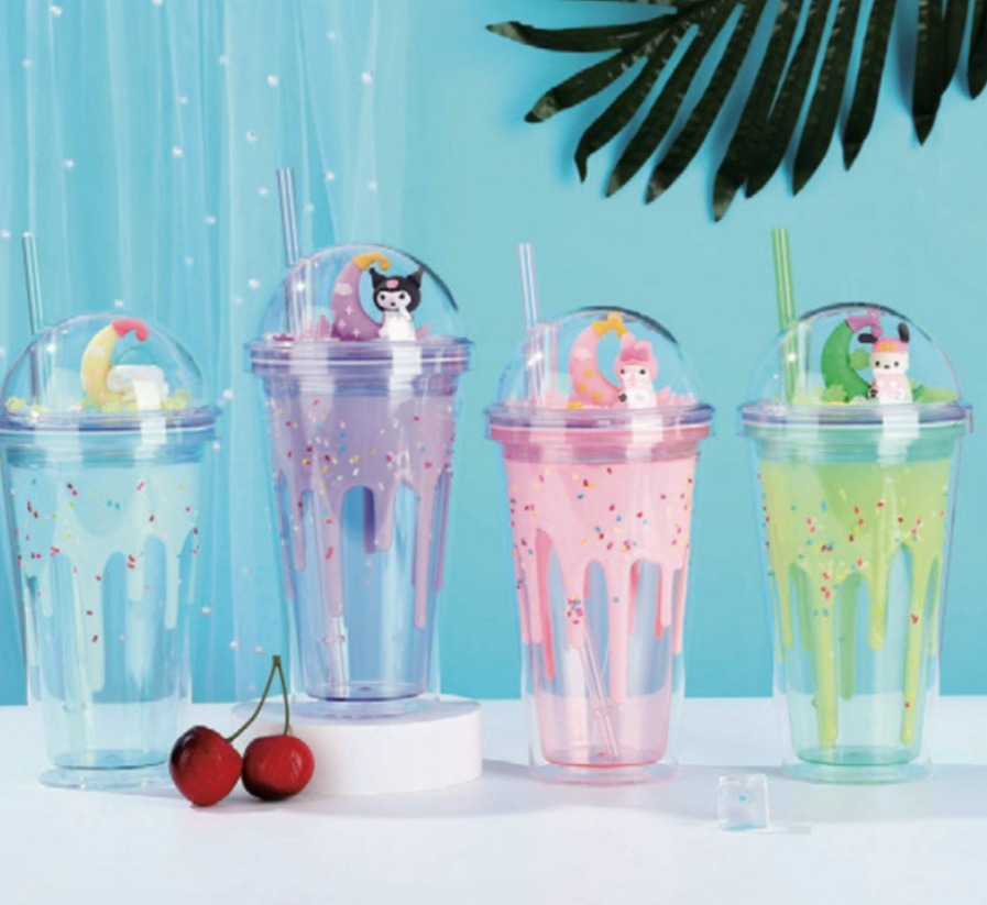 VASO ACRILICO + SORBETE LUNA DURMIENTE KITTY Y AMIGOS 450ML