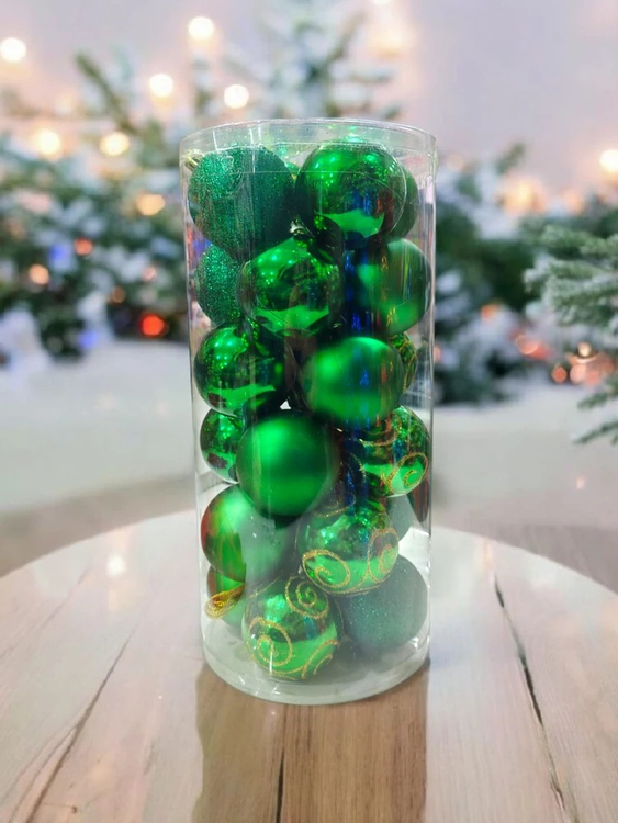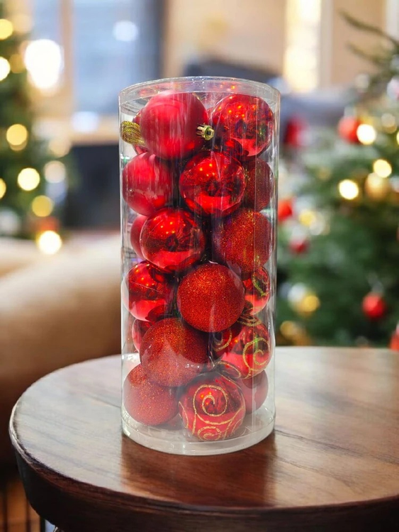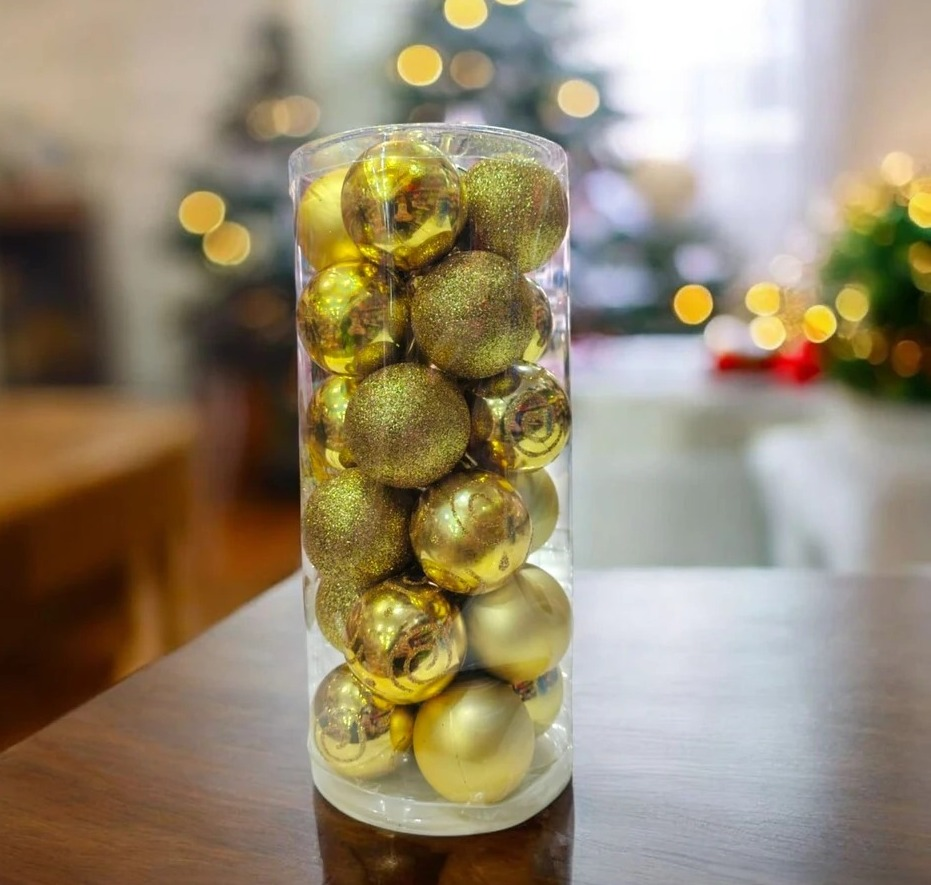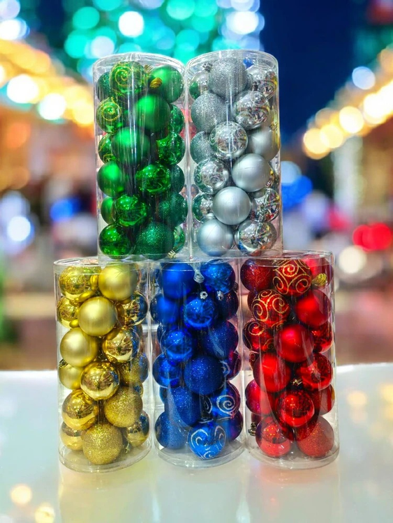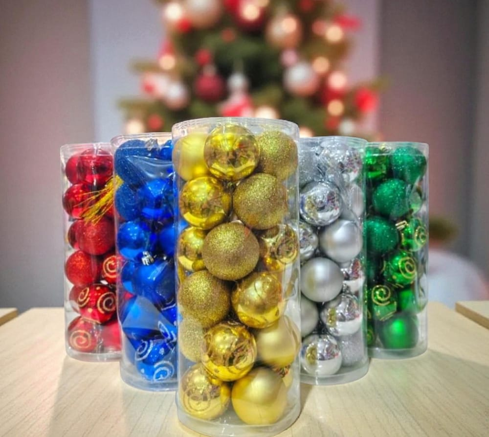 Decoracion para el arbolito de navidad, vienen con glitter, opacas, platinadas y algunas vienen con diseño en colores.