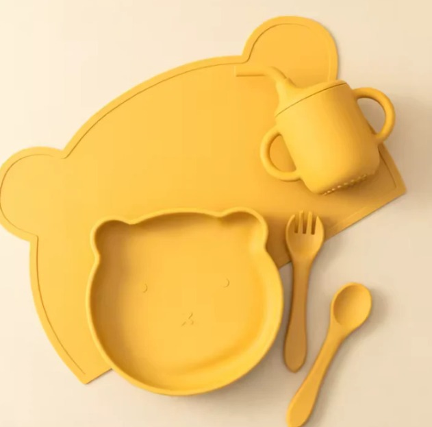 Fabricado en silicona de grado alimenticio, libre de BPA y no tóxica, seguro para bebés y niños. Incluye plato con ventosa antideslizante, taza, cuchara, tenedor e individual. Apto para microondas, lavavajillas, horno y freezer. Resiste temperaturas de -40 °C a +200 °C, es suave, flexible y duradero. Diseño adorable con forma de osito, ideal para las primeras comidas o como regalo. Medida: 37×7×7 cm