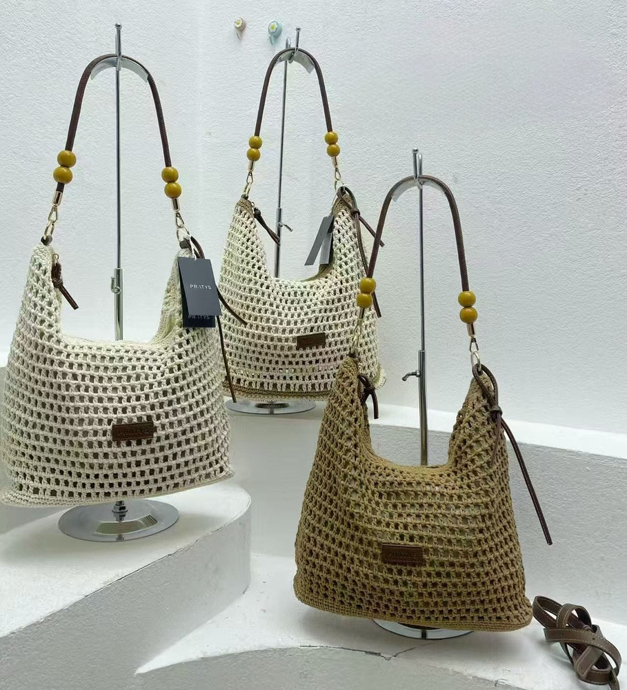 BOLSO CARTERA TEJIDA FORRADA CON DETALLES MADERA