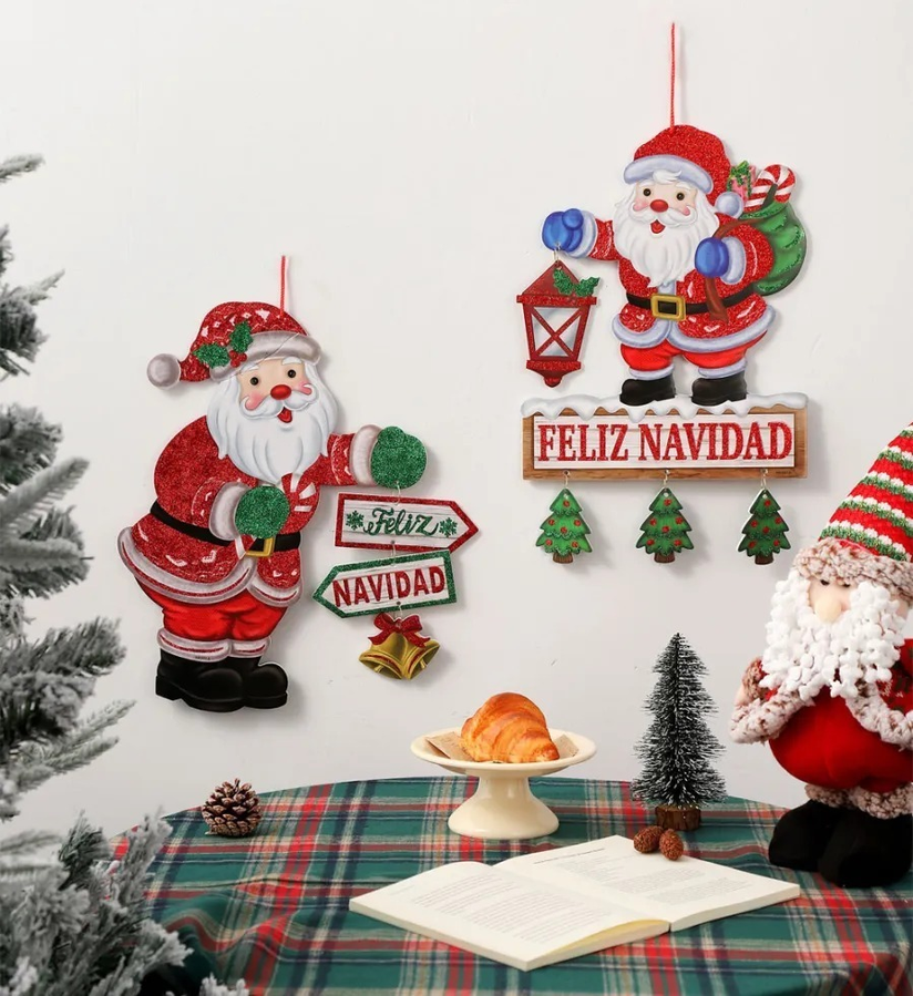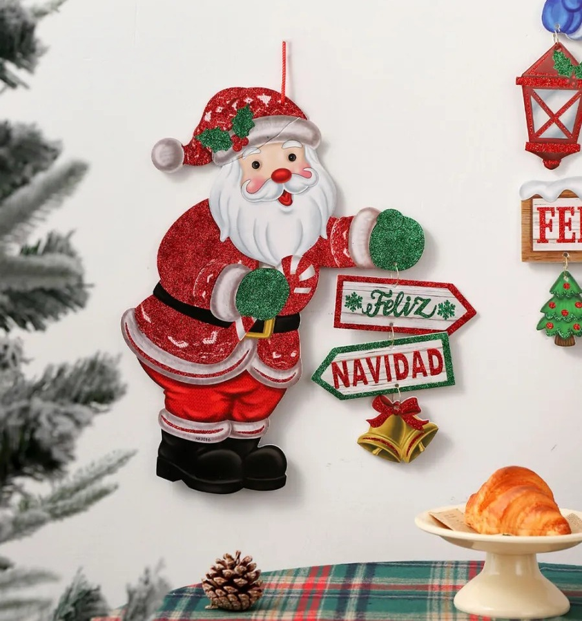 Cartel navideño de papá noel. Decoración navideña en foam con relieve y acabado brillante, ideal para dar un toque festivo a puertas, paredes o vidrieras. perfecto para ambientar el hogar o locales comerciales en las fiestas.