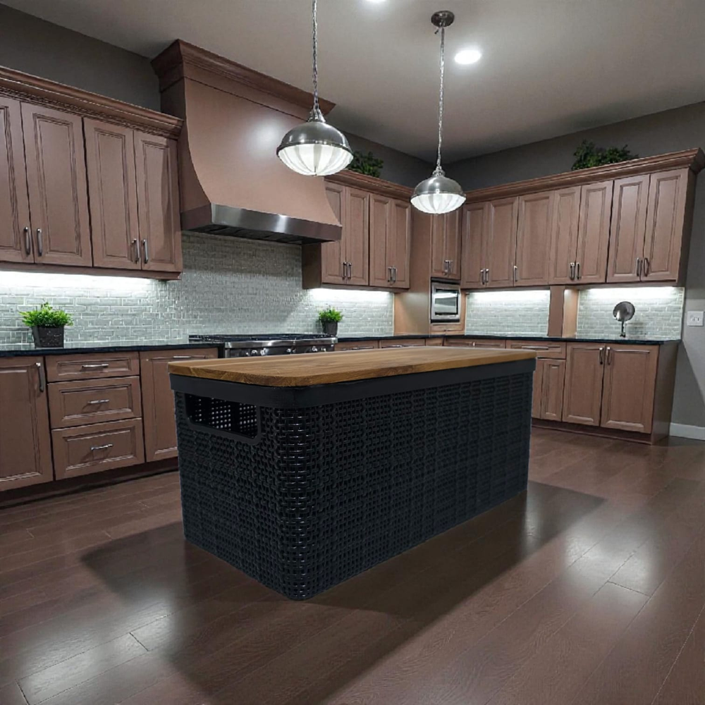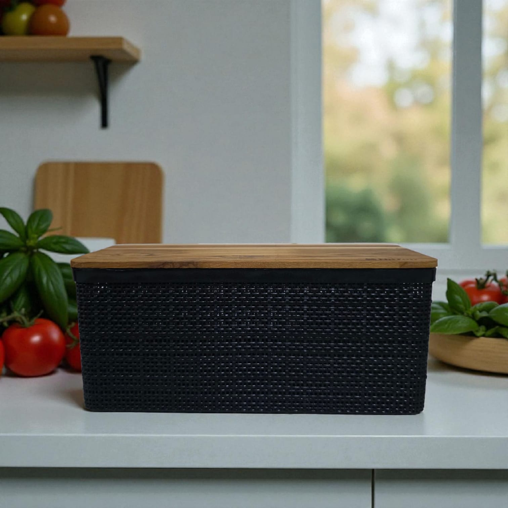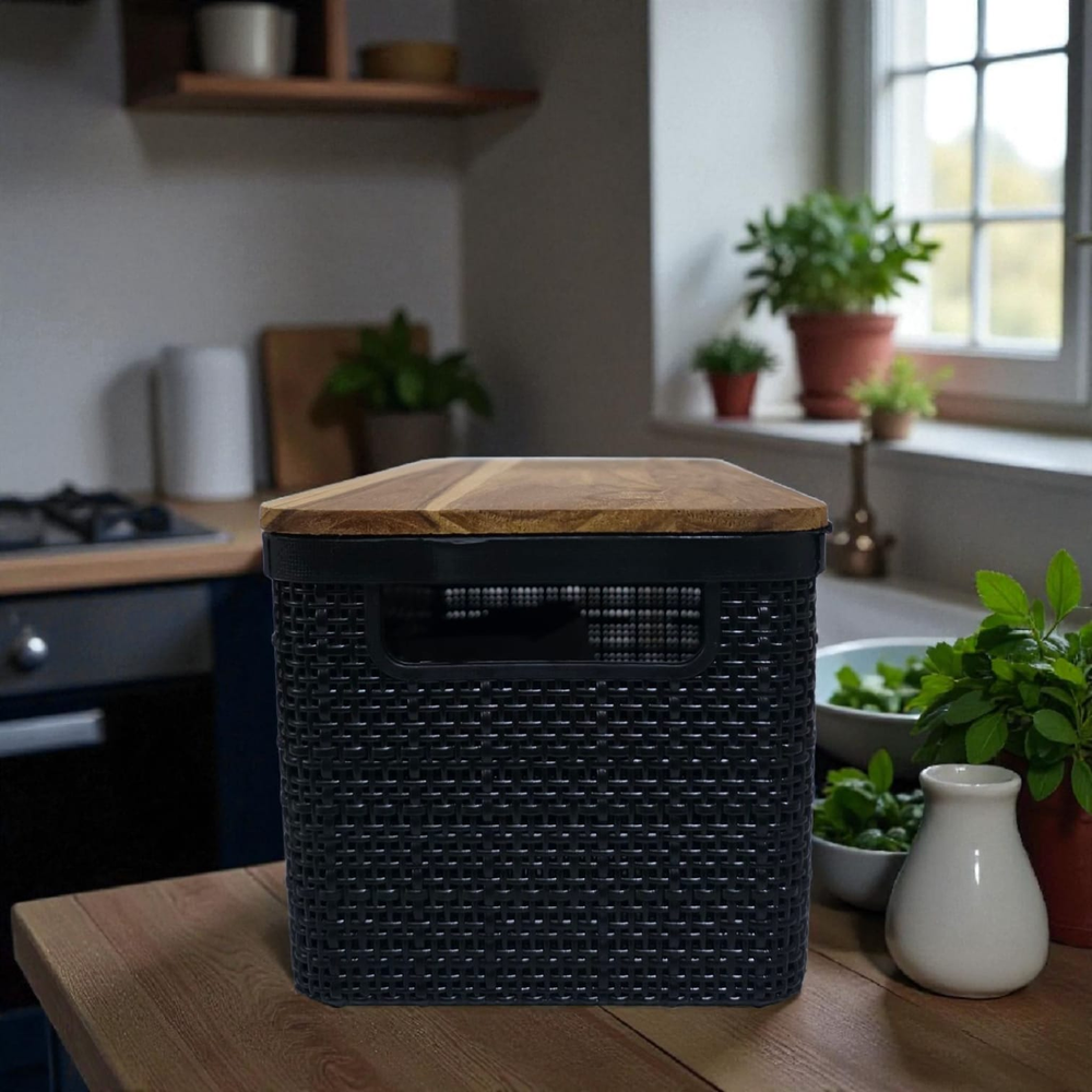 CANASTO YUTE RECTANGULAR NITRON CON TAPA BAMBU 13 X 12CM