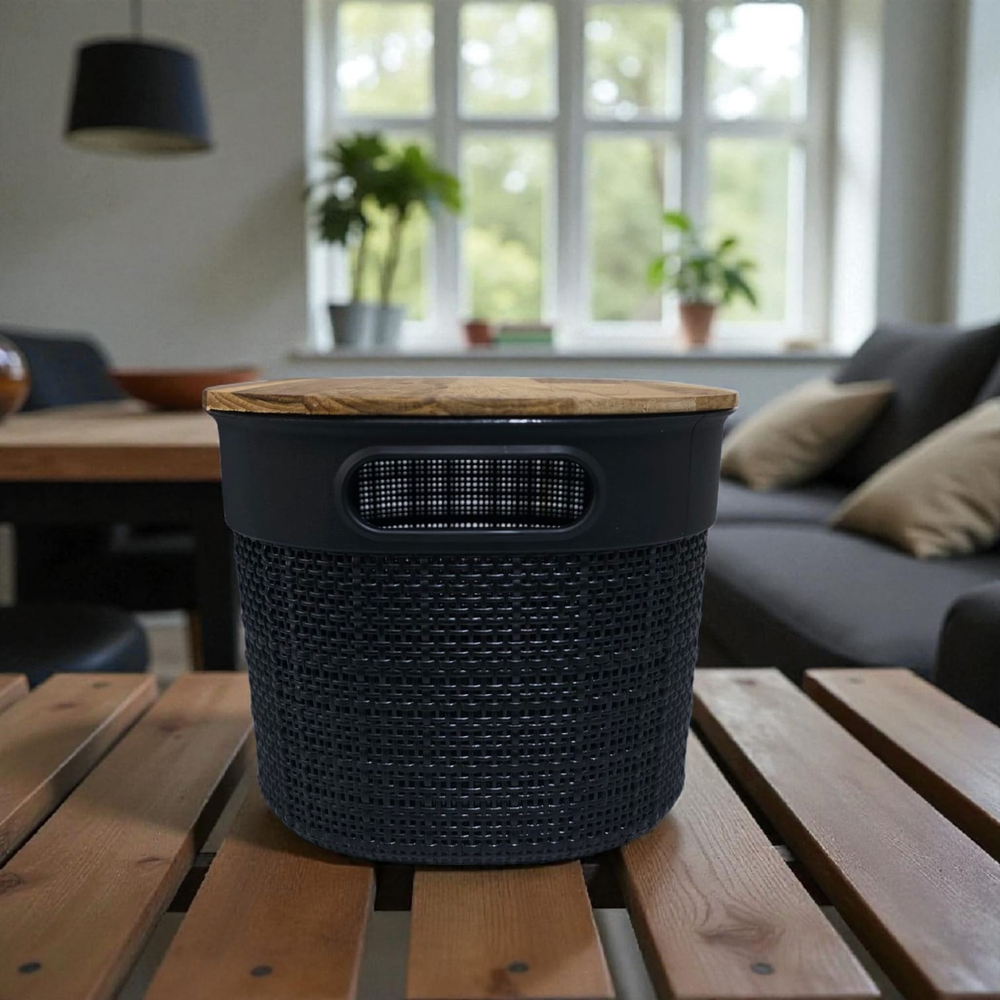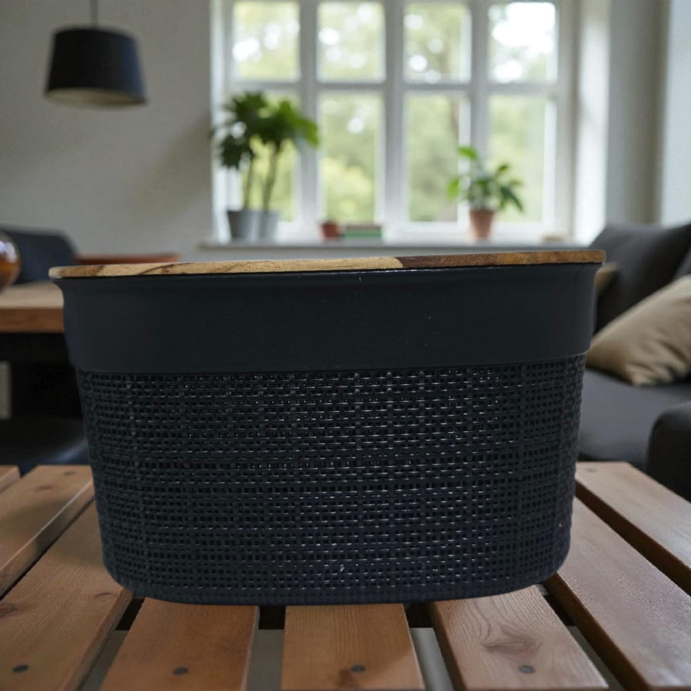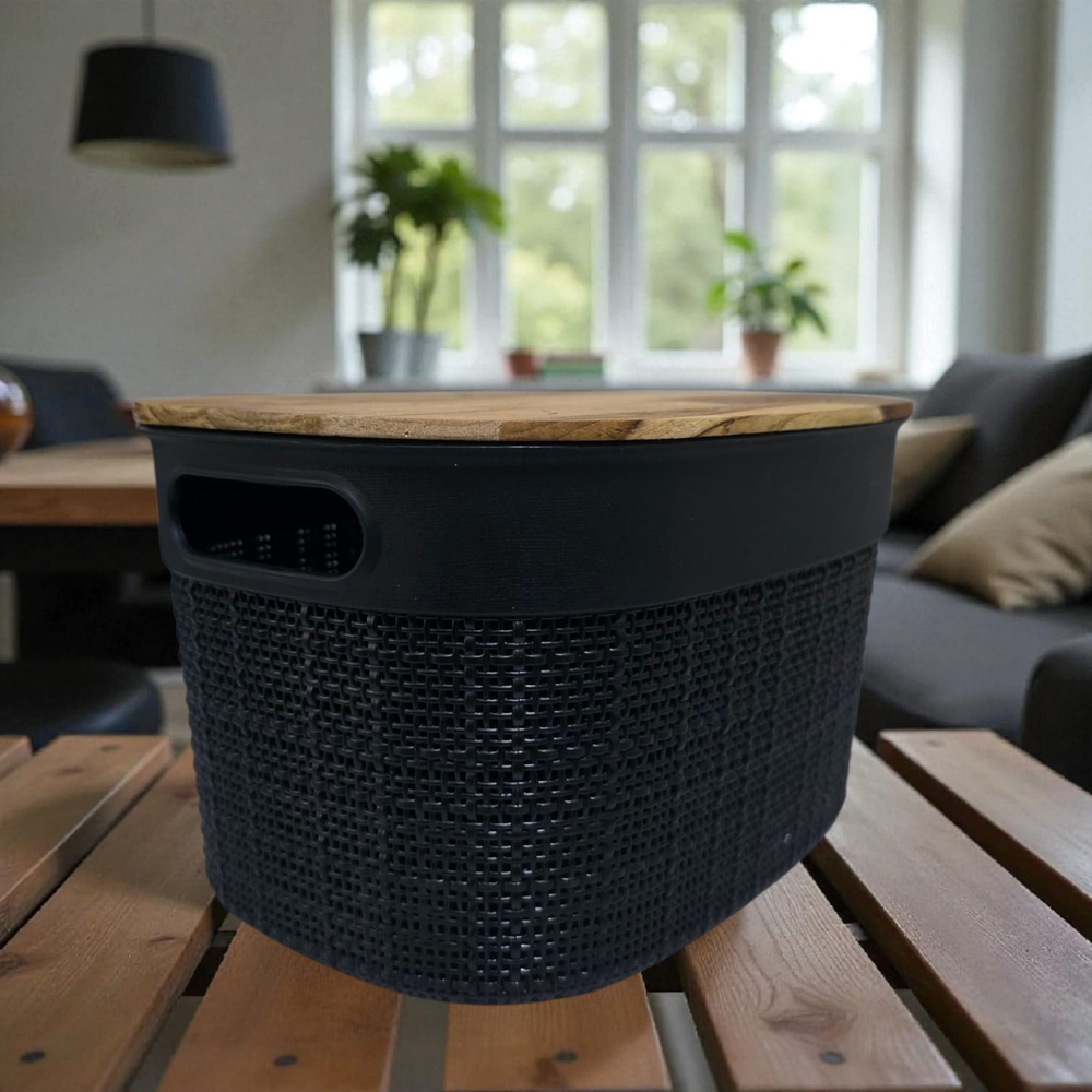 CANASTO OVAL YUTE NITRON CON TAPA BAMBU 15 X 22CM