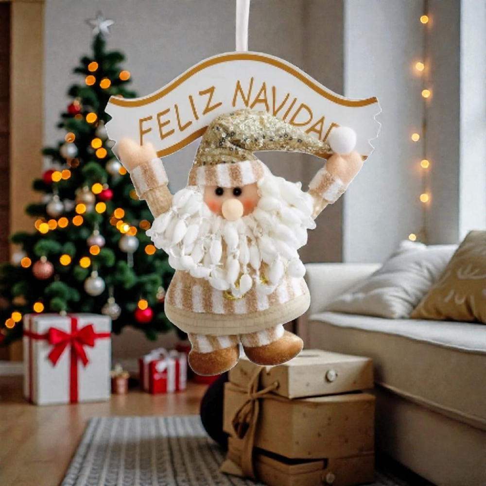 PAPA NOEL COLGANTE CARTEL NAVIDAD DORADO 32CM