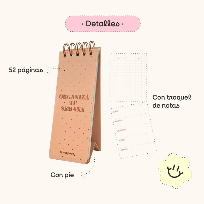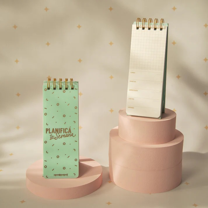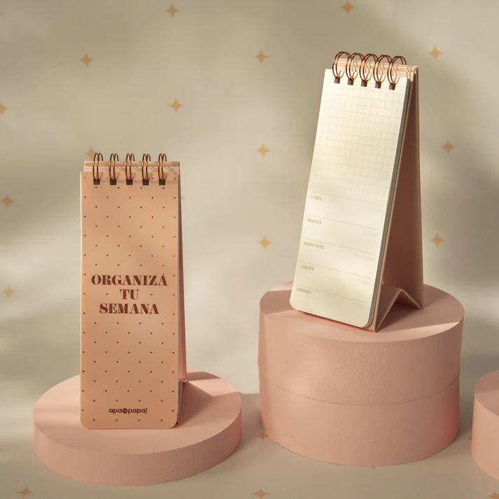 Nueva linea de organizadores semanales, Para las personas organizadas, amantes de anotarse todo, llega este producto ideal. Con tapa flex, anillado a tono y con 52 semanas para organizar el año. Viene con un formato único y pie de apoyo. También tiene troquel para llevarte tus notitas a donde vayas.