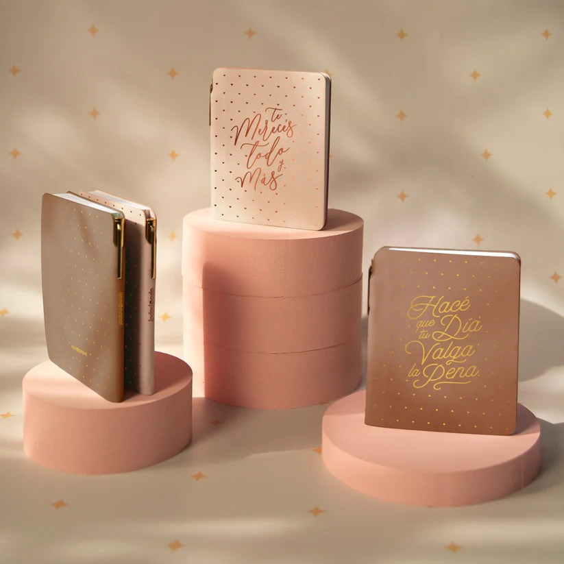 Amamos esta nueva colección de cuadernos de cuero ecológico! Delicados, elegantes, hermosos! En su presentación A6 viene con puntas redondeadas y tapa semi rígida. Rallados en su interior, con sector para titulares y fecha. Y una sorpresa…viene con una brome dorada de regalo!! Un detalle super especial.