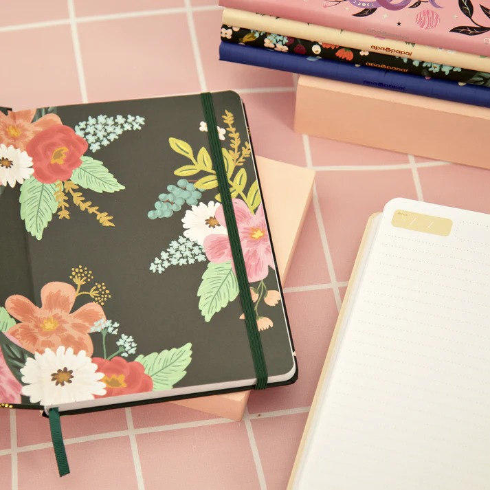 Son un sueño nuestros cuadernos lomo A5! Con terminación Soft Touch mate, hot stamping, Vienen con elástico, puntas redondeadas y tapa dura. Rallados, con sector para titulares y fecha. Con cinta señaladora a tono del diseño.