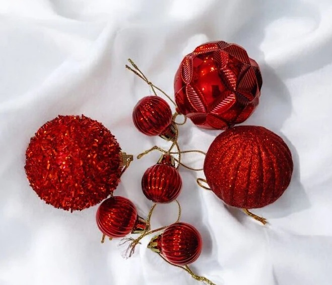 Bolitas para decorar el arbol navideño. Vienen 14 bolitas grandes con diferentes texturas y muy brillantes, tambien 16 bolitas chiquitas.