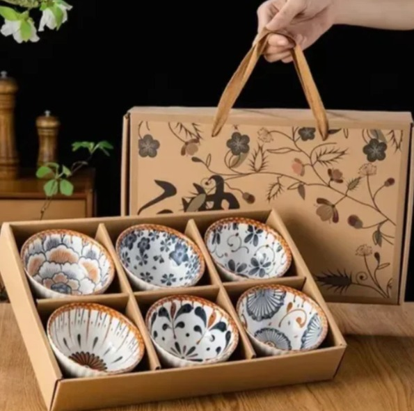 SET CUENCOS X6 DE PORCELANA ESTAMPADA + CAJA PRESENTACION