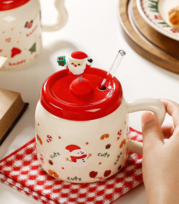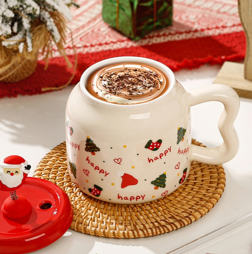 TAZA CERAMICA CON TAPA + SORBETE PAPA NOEL