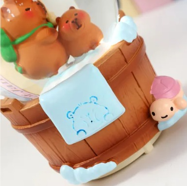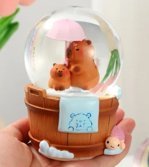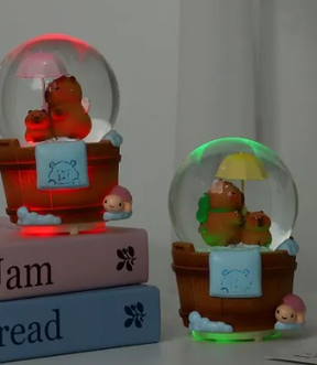 Bola de cristal con diseño de capibara. Cuenta con luz que ilumina suavemente y música integrada. Súper tierno y cálido, ideal para regalar o decorar tu espacio. Funciona con 3 pilas LR44 (vienen incluidas).