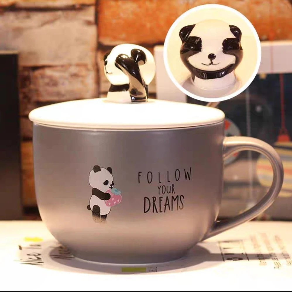 TAZON CERAMICA PANDA GRIS CON TAPA+ CUCHARA