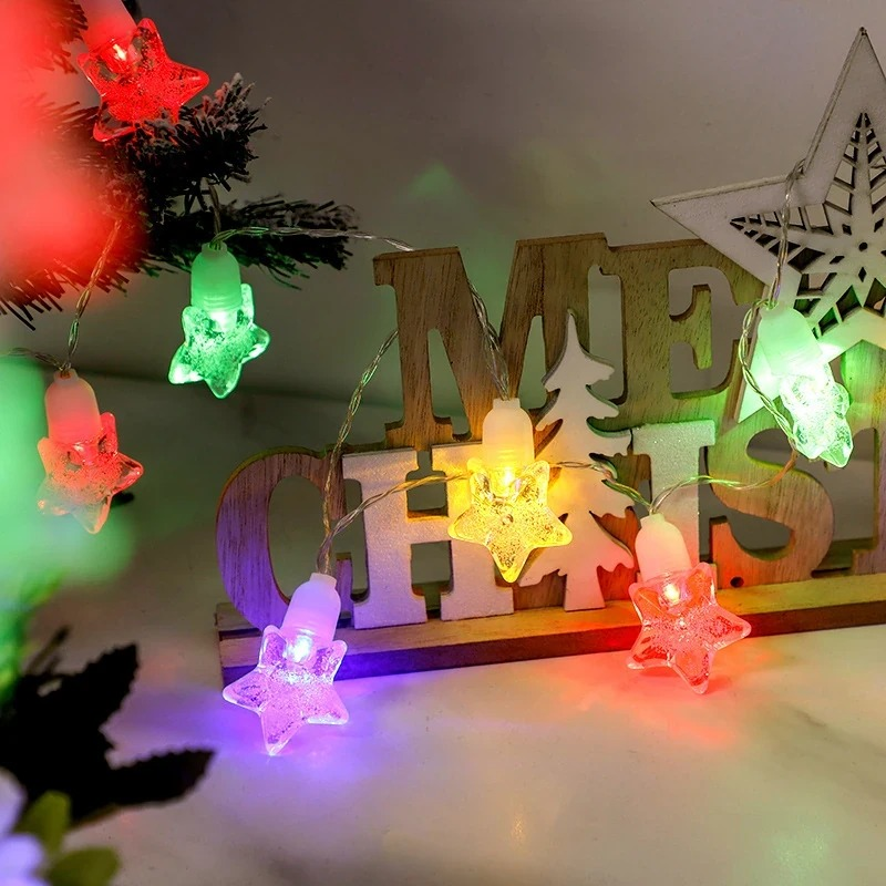 (Luz guirnalda tipo enchufe. Cuenta con 10 luces multicolor con diseño estrellas. Y cuentan con 2 cabezales un cable de enchufe y otra de extención. Ideal para decorar tu hogar, oficina, comercio, etc).