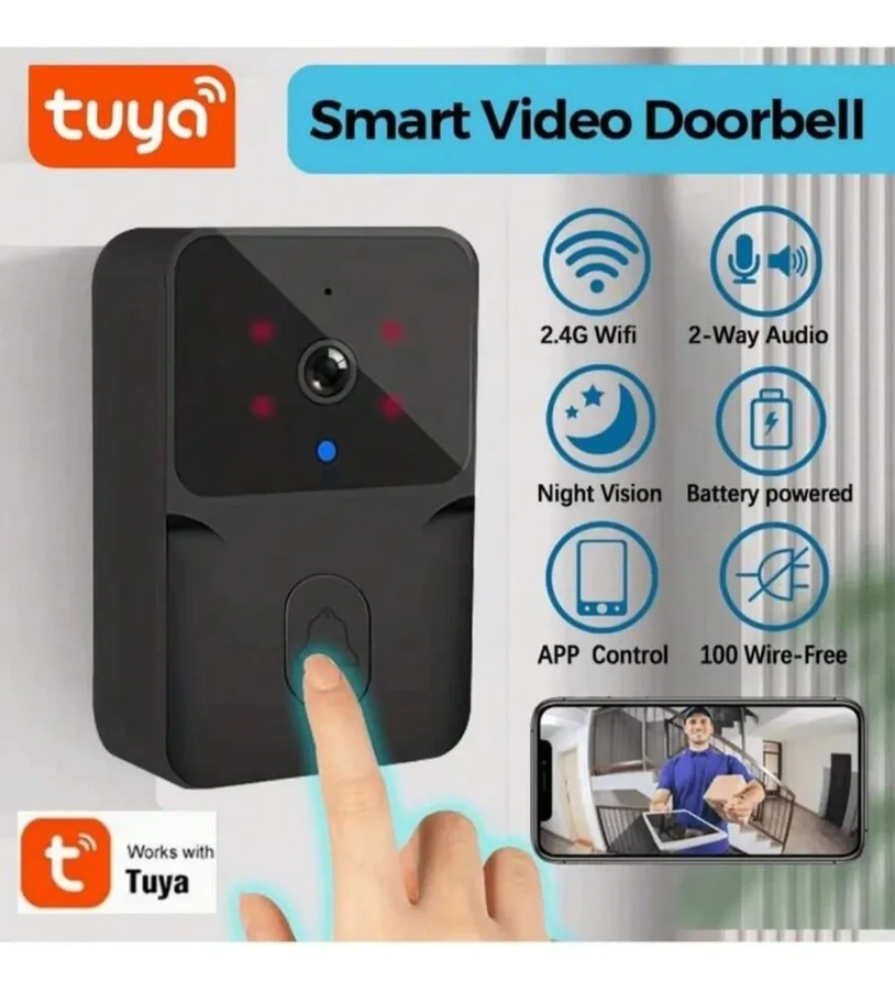 El Timbre Inteligente Wifi con Cámara HD de la marca Doorbell es la solución perfecta para mantener la seguridad de tu hogar. Este dispositivo elegante y funcional en color negro te permite ver y comunicarte con visitantes desde cualquier lugar a través de su aplicación móvil Tuya y Smart Life.
